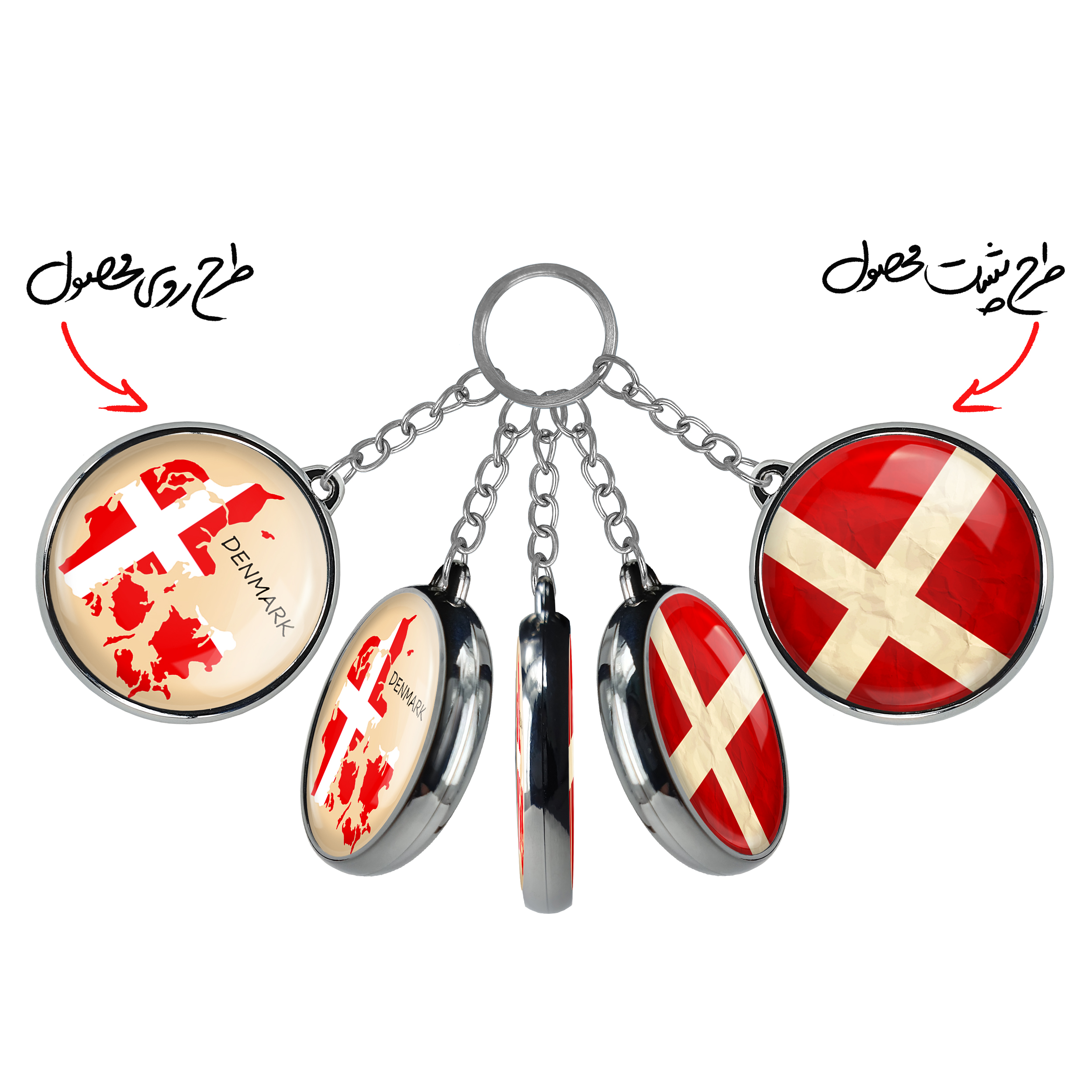 جاکلیدی دوطرفه پرچم دانمارک خندالو محصولی کاربردی و جدید است که در هر دو سمت محصول، تصویری متفاوت اما از یک موضوع چاپ شده و تفاوت اصلی آن با جاکلیدی های یک طرفه در همین است که هر دو سمت پشت و روی جاکلیدی، طرحی دیدنی و جذاب دارد.