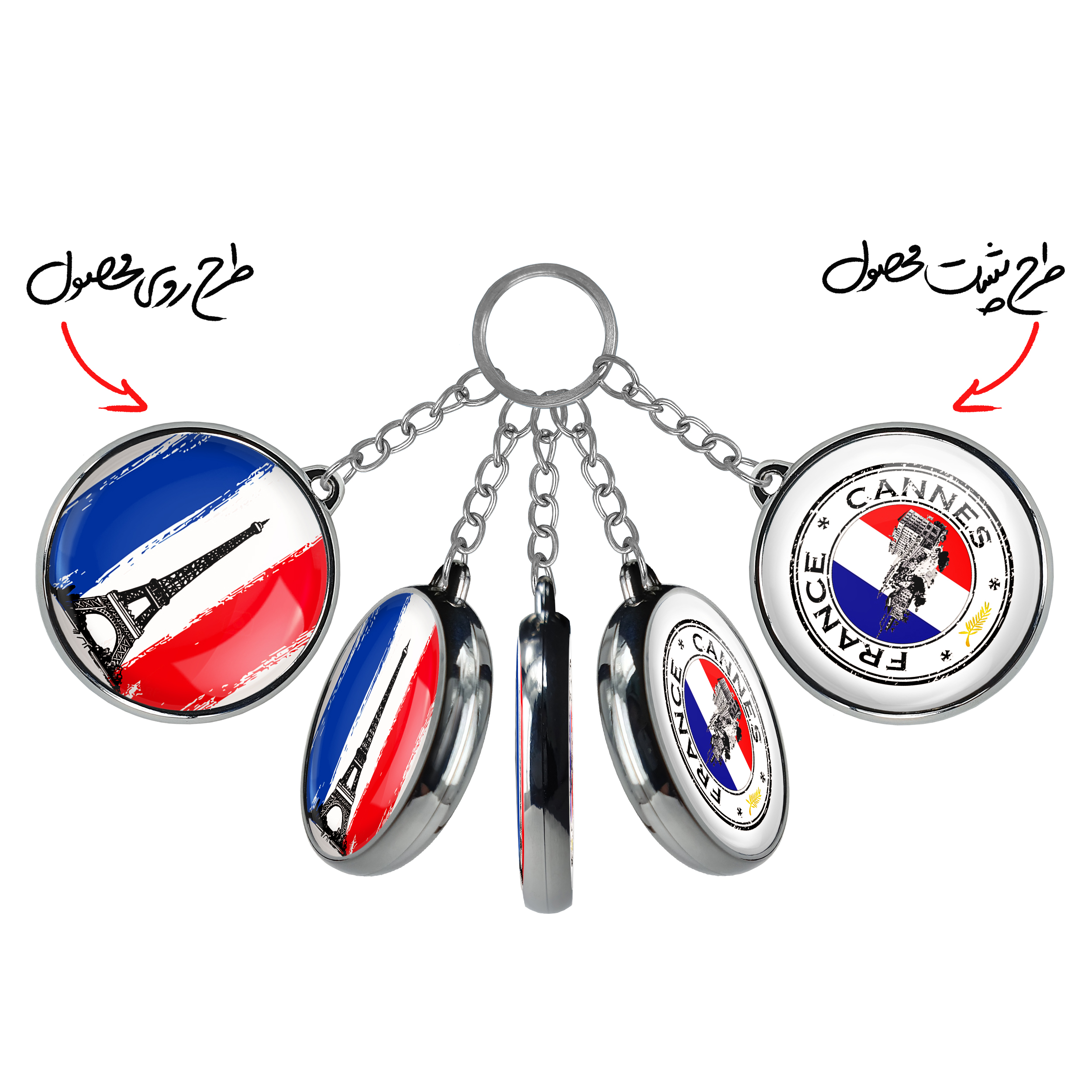 جاکلیدی دوطرفه پرچم فرانسه خندالو محصولی کاربردی و جدید است که در هر دو سمت محصول، تصویری متفاوت اما از یک موضوع چاپ شده و تفاوت اصلی آن با جاکلیدی های یک طرفه در همین است که هر دو سمت پشت و روی جاکلیدی، طرحی دیدنی و جذاب دارد. همچنین رینگ بکار برده شده برای دور طرح ها آبکاری کروم درجه یک و رنگ ثابت است و برخلاف سایر محصولات مشابه، از رنگ های متفرقه و یا سفید استفاده نشده، که این مهم، زیبایی محصول نهایی را چند برابر کرده است. جاکلیدی های دوطرفه پرچم فرانسه با استفاده از روکش سلفون براق ضدخش تولید شده که خاصیت ضدخش بودن آن عمر مفید استفاده از جاکلیدی ها را افزایش میدهد. چاپ جاکلیدی ها با دستگاه های استاندارد و با بهترین سطح کیفیت صورت گرفته و طرح با شفافیتی مثال زدنی و با سلفون چسبی تولید شده است که باعث شده محصول نهایی بدون شکست نور دیده شود. همچنین بسته بندی جذاب و مینیمال جاکلیدی دوطرفه پرچم فرانسه ، آنها را محصولی مناسب هدیه کرده است. زنجیر و حلقه بکار برده شده در جاکلیدی خندالو از نوع حلقه ضخیم و محکم بوده و حین استفاده آسیب نمی بیند.