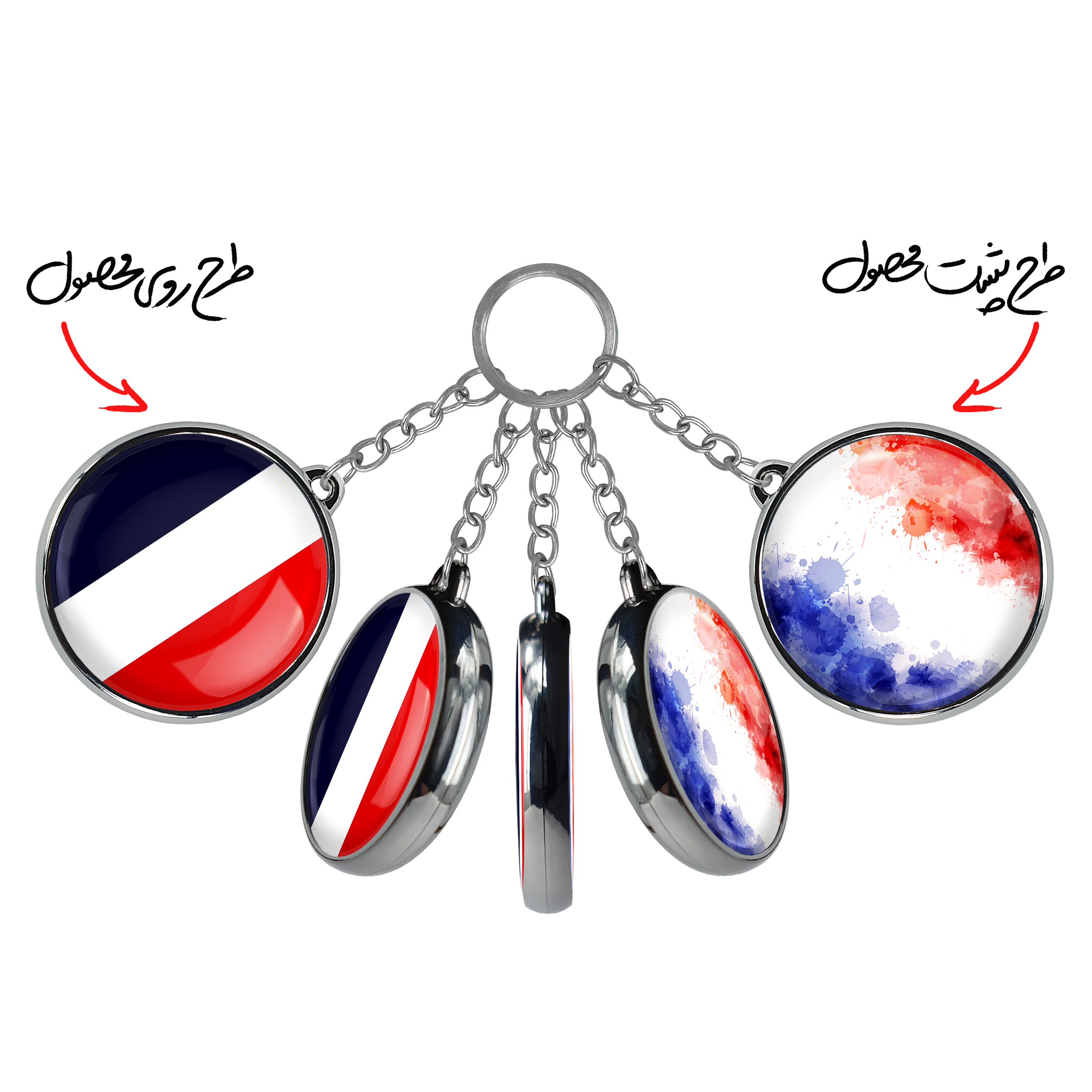جاکلیدی دوطرفه پرچم فرانسه خندالو محصولی کاربردی و جدید است که در هر دو سمت محصول، تصویری متفاوت اما از یک موضوع چاپ شده و تفاوت اصلی آن با جاکلیدی های یک طرفه در همین است که هر دو سمت پشت و روی جاکلیدی، طرحی دیدنی و جذاب دارد.