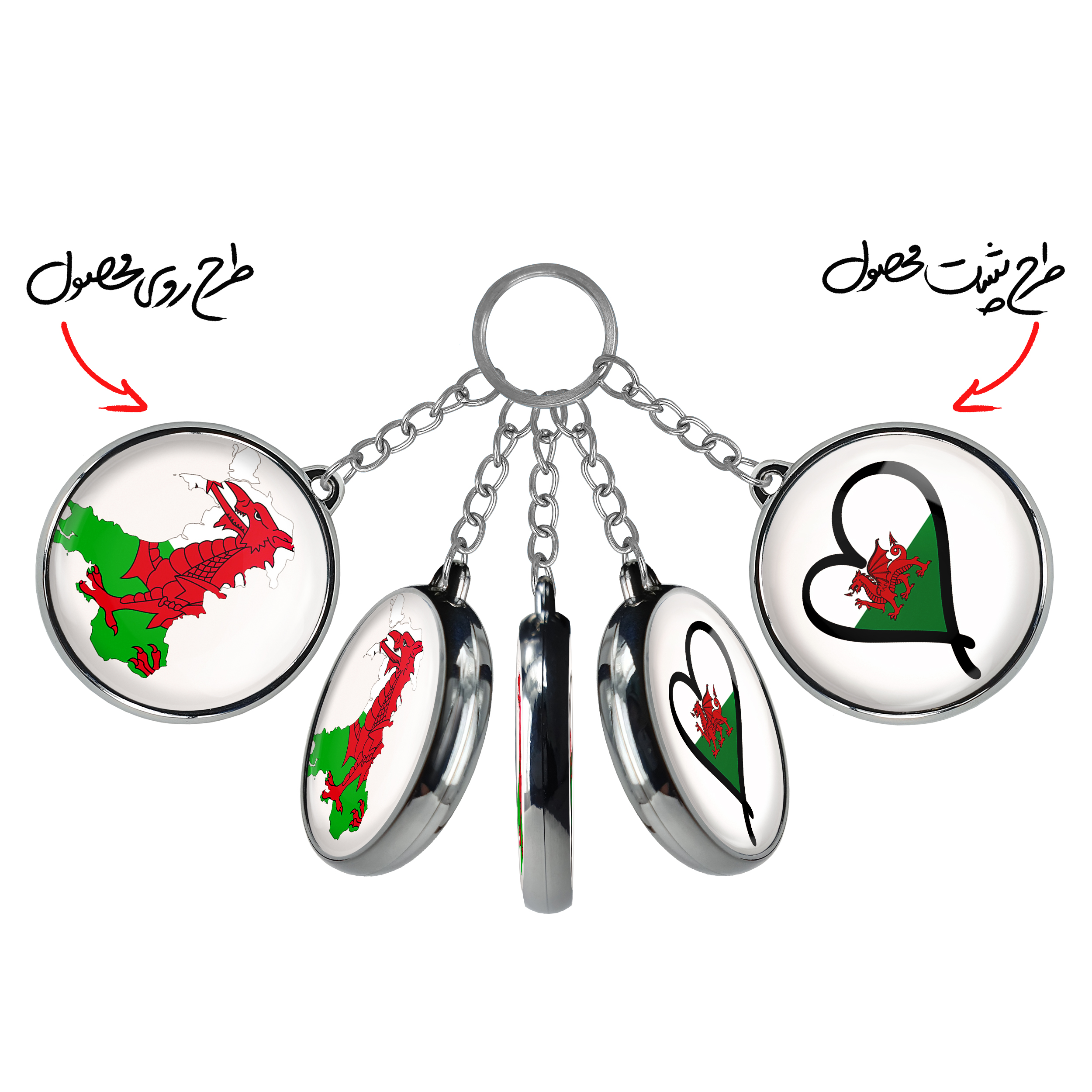 جاکلیدی دوطرفه پرچم ولز خندالو محصولی کاربردی و جدید است که در هر دو سمت محصول، تصویری متفاوت اما از یک موضوع چاپ شده و تفاوت اصلی آن با جاکلیدی های یک طرفه در همین است که هر دو سمت پشت و روی جاکلیدی، طرحی دیدنی و جذاب دارد.