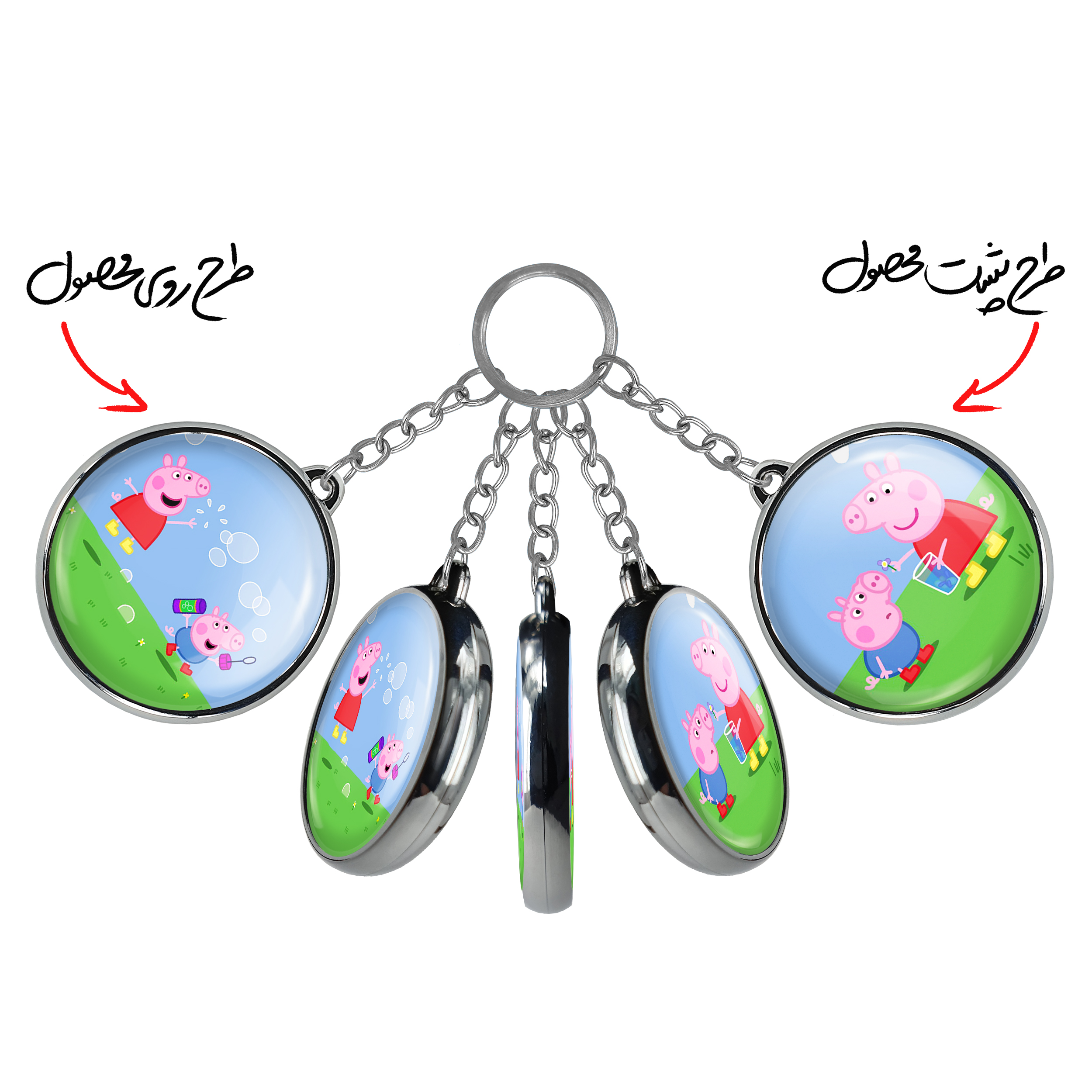 جاکلیدی دوطرفه پپا و جورج انیمیشن پپا پیگ Peppa pig خندالو محصولی کاربردی و جدید است که در هر دو سمت محصول، تصویری متفاوت اما از یک موضوع چاپ شده و تفاوت اصلی آن با جاکلیدی های یک طرفه در همین است که هر دو سمت پشت و روی جاکلیدی، طرحی دیدنی و جذاب دارد. همچنین رینگ بکار برده شده برای دور طرح ها آبکاری کروم درجه یک و رنگ ثابت است و برخلاف سایر محصولات مشابه، از رنگ های متفرقه و یا سفید استفاده نشده، که این مهم، زیبایی محصول نهایی را چند برابر کرده است. جاکلیدی های دوطرفه پپا و جورج انیمیشن پپا پیگ Peppa pig با استفاده از روکش سلفون براق ضدخش تولید شده که خاصیت ضدخش بودن آن عمر مفید استفاده از جاکلیدی ها را افزایش میدهد. چاپ جاکلیدی ها با دستگاه های استاندارد و با بهترین سطح کیفیت صورت گرفته و طرح با شفافیتی مثال زدنی و با سلفون چسبی تولید شده است که باعث شده محصول نهایی بدون شکست نور دیده شود. همچنین بسته بندی جذاب و مینیمال جاکلیدی دوطرفه پپا و جورج انیمیشن پپا پیگ Peppa pig ، آنها را محصولی مناسب هدیه کرده است. زنجیر و حلقه بکار برده شده در جاکلیدی خندالو از نوع حلقه ضخیم و محکم بوده و حین استفاده آسیب نمی بیند.