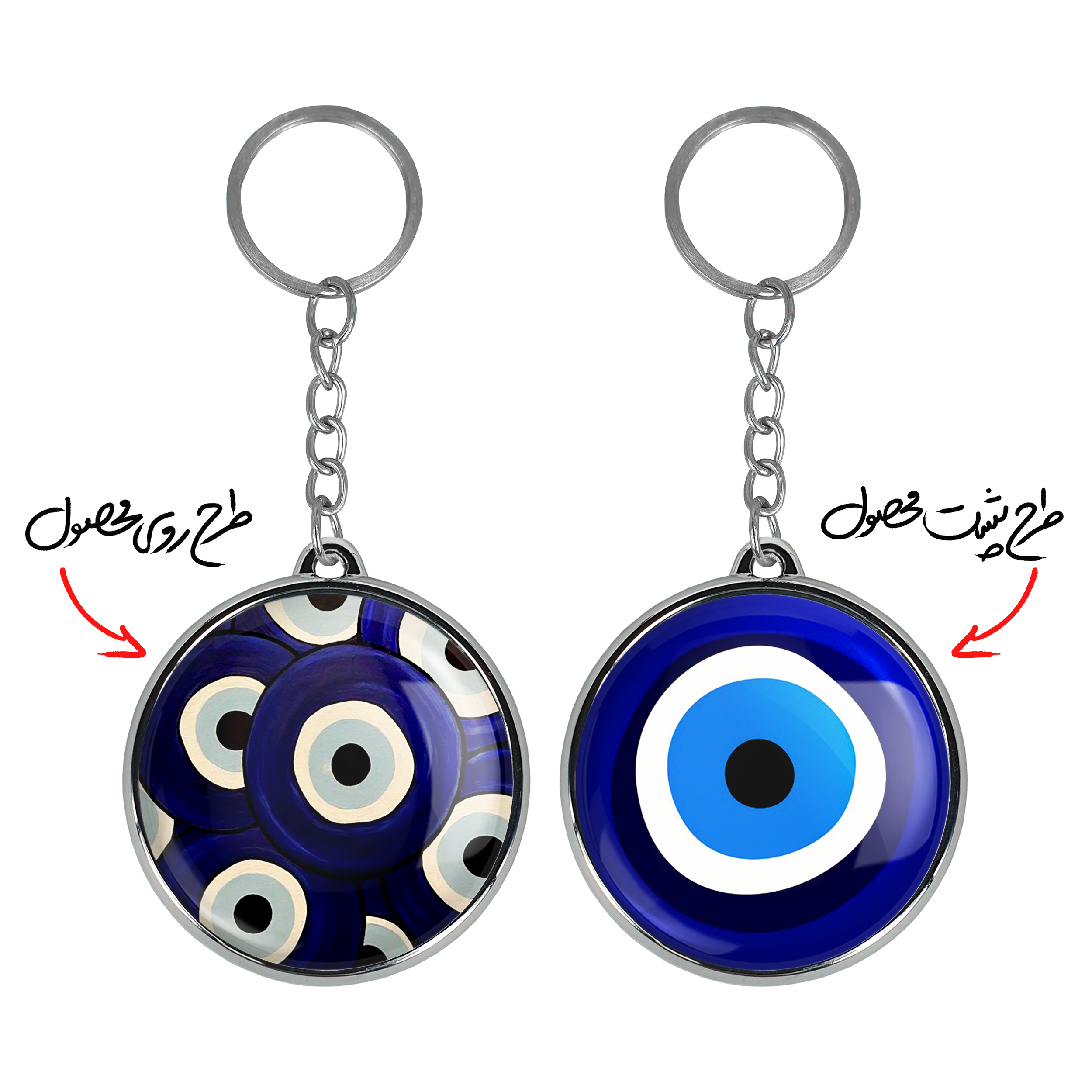 جاکلیدی دوطرفه چشم نظر خندالو محصولی کاربردی و جدید است که در هر دو سمت محصول، تصویری متفاوت اما از یک موضوع چاپ شده و تفاوت اصلی آن با جاکلیدی های یک طرفه در همین است که هر دو سمت پشت و روی جاکلیدی، طرحی دیدنی و جذاب دارد.