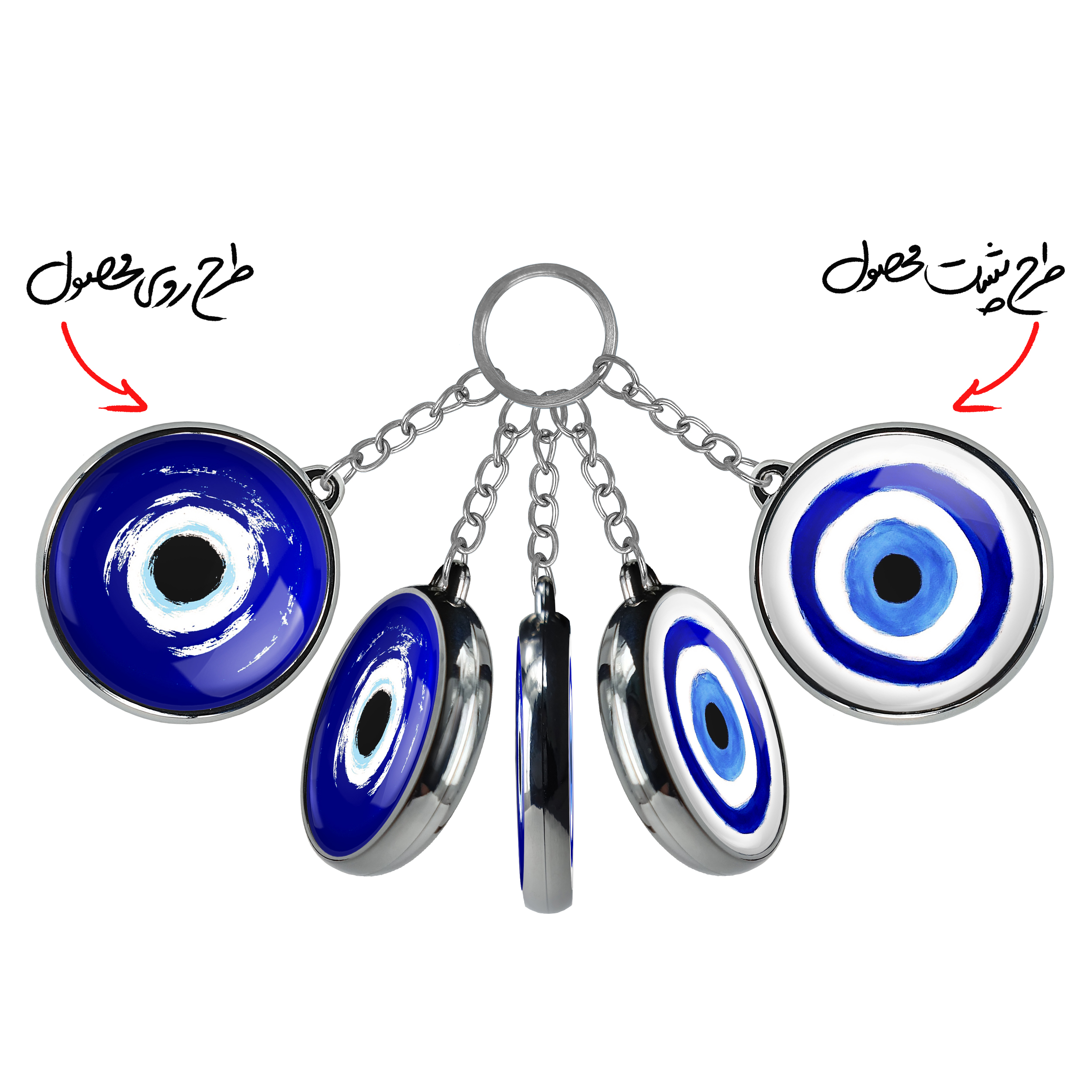 جاکلیدی دوطرفه چشم نظر خندالو محصولی کاربردی و جدید است که در هر دو سمت محصول، تصویری متفاوت اما از یک موضوع چاپ شده و تفاوت اصلی آن با جاکلیدی های یک طرفه در همین است که هر دو سمت پشت و روی جاکلیدی، طرحی دیدنی و جذاب دارد. همچنین رینگ بکار برده شده برای دور طرح ها آبکاری کروم درجه یک و رنگ ثابت است و برخلاف سایر محصولات مشابه، از رنگ های متفرقه و یا سفید استفاده نشده، که این مهم، زیبایی محصول نهایی را چند برابر کرده است. جاکلیدی های دوطرفه چشم نظر با استفاده از روکش سلفون براق ضدخش تولید شده که خاصیت ضدخش بودن آن عمر مفید استفاده از جاکلیدی ها را افزایش میدهد. چاپ جاکلیدی ها با دستگاه های استاندارد و با بهترین سطح کیفیت صورت گرفته و طرح با شفافیتی مثال زدنی و با سلفون چسبی تولید شده است که باعث شده محصول نهایی بدون شکست نور دیده شود. همچنین بسته بندی جذاب و مینیمال جاکلیدی دوطرفه چشم نظر ، آنها را محصولی مناسب هدیه کرده است. زنجیر و حلقه بکار برده شده در جاکلیدی خندالو از نوع حلقه ضخیم و محکم بوده و حین استفاده آسیب نمی بیند.