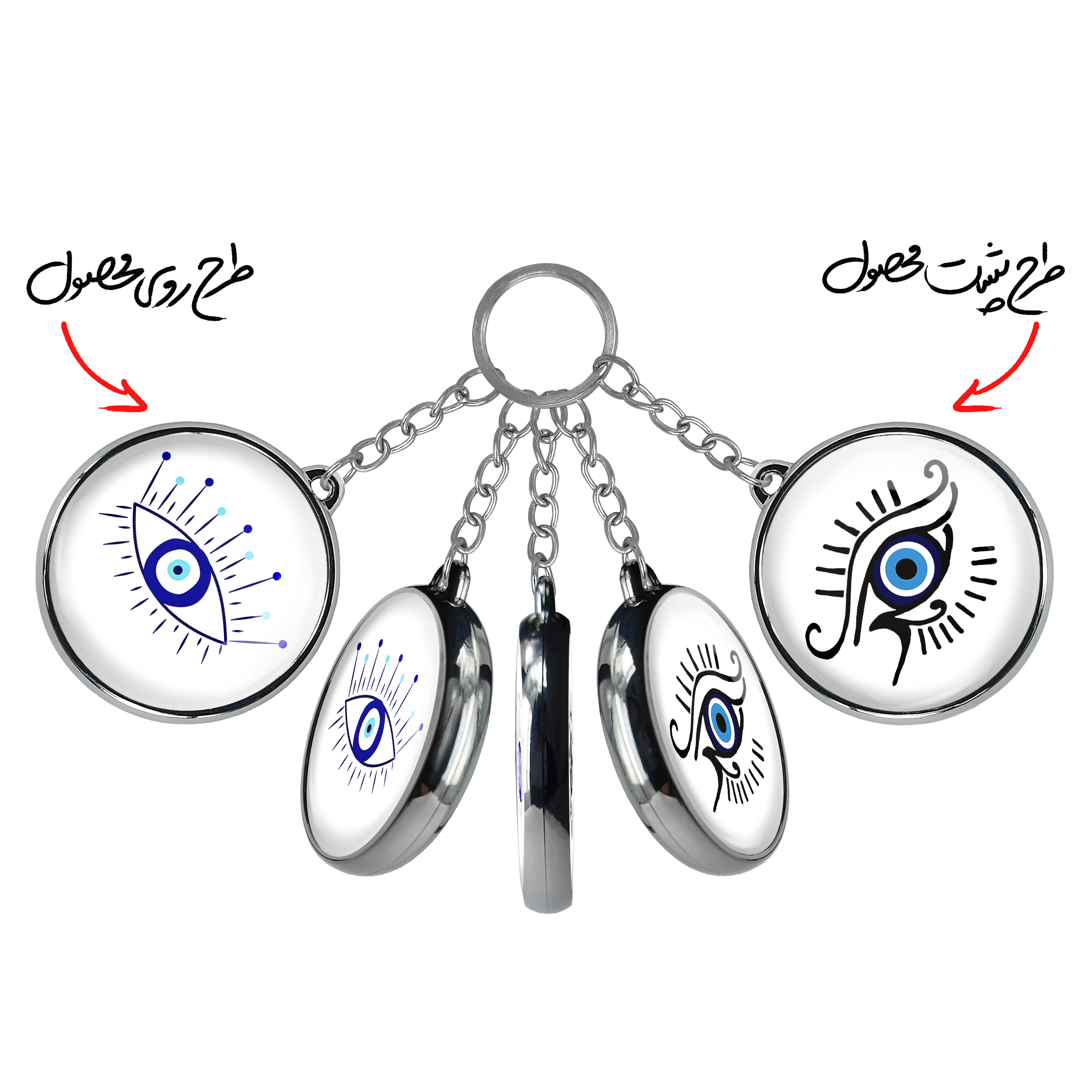 جاکلیدی دوطرفه چشم نظر خندالو محصولی کاربردی و جدید است که در هر دو سمت محصول، تصویری متفاوت اما از یک موضوع چاپ شده و تفاوت اصلی آن با جاکلیدی های یک طرفه در همین است که هر دو سمت پشت و روی جاکلیدی، طرحی دیدنی و جذاب دارد. همچنین رینگ بکار برده شده برای دور طرح ها آبکاری کروم درجه یک و رنگ ثابت است و برخلاف سایر محصولات مشابه، از رنگ های متفرقه و یا سفید استفاده نشده، که این مهم، زیبایی محصول نهایی را چند برابر کرده است. جاکلیدی های دوطرفه چشم نظر با استفاده از روکش سلفون براق ضدخش تولید شده که خاصیت ضدخش بودن آن عمر مفید استفاده از جاکلیدی ها را افزایش میدهد. چاپ جاکلیدی ها با دستگاه های استاندارد و با بهترین سطح کیفیت صورت گرفته و طرح با شفافیتی مثال زدنی و با سلفون چسبی تولید شده است که باعث شده محصول نهایی بدون شکست نور دیده شود. همچنین بسته بندی جذاب و مینیمال جاکلیدی دوطرفه چشم نظر ، آنها را محصولی مناسب هدیه کرده است. زنجیر و حلقه بکار برده شده در جاکلیدی خندالو از نوع حلقه ضخیم و محکم بوده و حین استفاده آسیب نمی بیند.