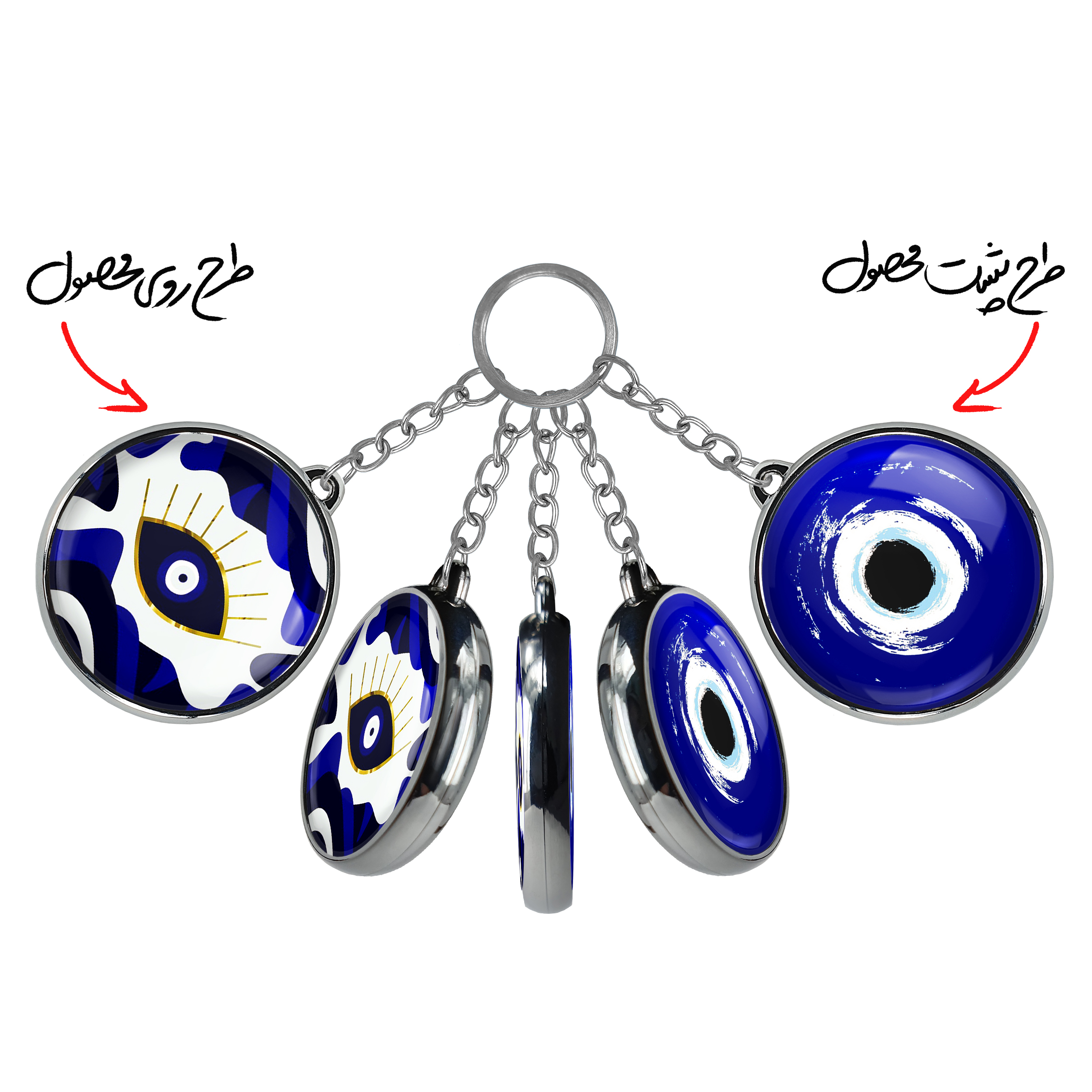 جاکلیدی دوطرفه چشم نظر خندالو محصولی کاربردی و جدید است که در هر دو سمت محصول، تصویری متفاوت اما از یک موضوع چاپ شده و تفاوت اصلی آن با جاکلیدی های یک طرفه در همین است که هر دو سمت پشت و روی جاکلیدی، طرحی دیدنی و جذاب دارد. همچنین رینگ بکار برده شده برای دور طرح ها آبکاری کروم درجه یک و رنگ ثابت است و برخلاف سایر محصولات مشابه، از رنگ های متفرقه و یا سفید استفاده نشده، که این مهم، زیبایی محصول نهایی را چند برابر کرده است. جاکلیدی های دوطرفه چشم نظر با استفاده از روکش سلفون براق ضدخش تولید شده که خاصیت ضدخش بودن آن عمر مفید استفاده از جاکلیدی ها را افزایش میدهد. چاپ جاکلیدی ها با دستگاه های استاندارد و با بهترین سطح کیفیت صورت گرفته و طرح با شفافیتی مثال زدنی و با سلفون چسبی تولید شده است که باعث شده محصول نهایی بدون شکست نور دیده شود. همچنین بسته بندی جذاب و مینیمال جاکلیدی دوطرفه چشم نظر ، آنها را محصولی مناسب هدیه کرده است. زنجیر و حلقه بکار برده شده در جاکلیدی خندالو از نوع حلقه ضخیم و محکم بوده و حین استفاده آسیب نمی بیند.