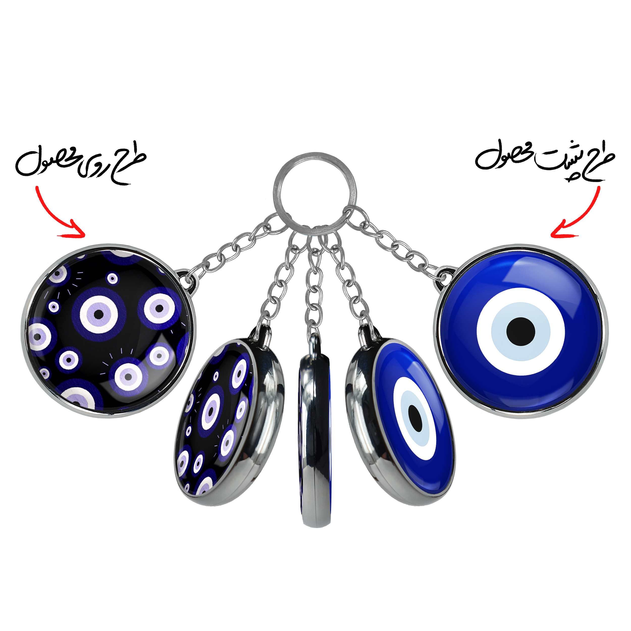 جاکلیدی دوطرفه چشم نظر خندالو محصولی کاربردی و جدید است که در هر دو سمت محصول، تصویری متفاوت اما از یک موضوع چاپ شده و تفاوت اصلی آن با جاکلیدی های یک طرفه در همین است که هر دو سمت پشت و روی جاکلیدی، طرحی دیدنی و جذاب دارد. همچنین رینگ بکار برده شده برای دور طرح ها آبکاری کروم درجه یک و رنگ ثابت است و برخلاف سایر محصولات مشابه، از رنگ های متفرقه و یا سفید استفاده نشده، که این مهم، زیبایی محصول نهایی را چند برابر کرده است. جاکلیدی های دوطرفه چشم نظر با استفاده از روکش سلفون براق ضدخش تولید شده که خاصیت ضدخش بودن آن عمر مفید استفاده از جاکلیدی ها را افزایش میدهد. چاپ جاکلیدی ها با دستگاه های استاندارد و با بهترین سطح کیفیت صورت گرفته و طرح با شفافیتی مثال زدنی و با سلفون چسبی تولید شده است که باعث شده محصول نهایی بدون شکست نور دیده شود. همچنین بسته بندی جذاب و مینیمال جاکلیدی دوطرفه چشم نظر ، آنها را محصولی مناسب هدیه کرده است. زنجیر و حلقه بکار برده شده در جاکلیدی خندالو از نوع حلقه ضخیم و محکم بوده و حین استفاده آسیب نمی بیند.