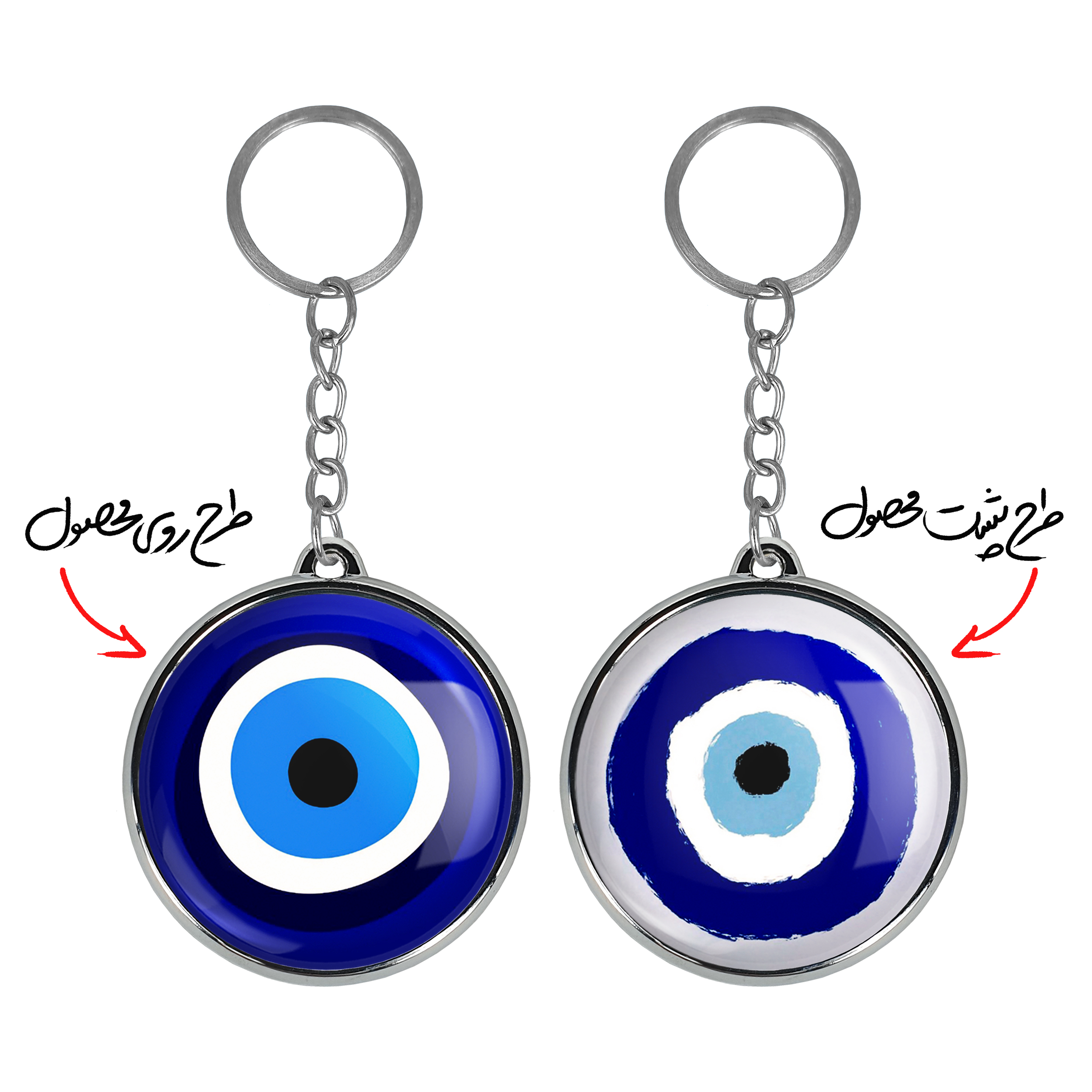 جاکلیدی دوطرفه چشم نظر خندالو محصولی کاربردی و جدید است که در هر دو سمت محصول، تصویری متفاوت اما از یک موضوع چاپ شده و تفاوت اصلی آن با جاکلیدی های یک طرفه در همین است که هر دو سمت پشت و روی جاکلیدی، طرحی دیدنی و جذاب دارد.