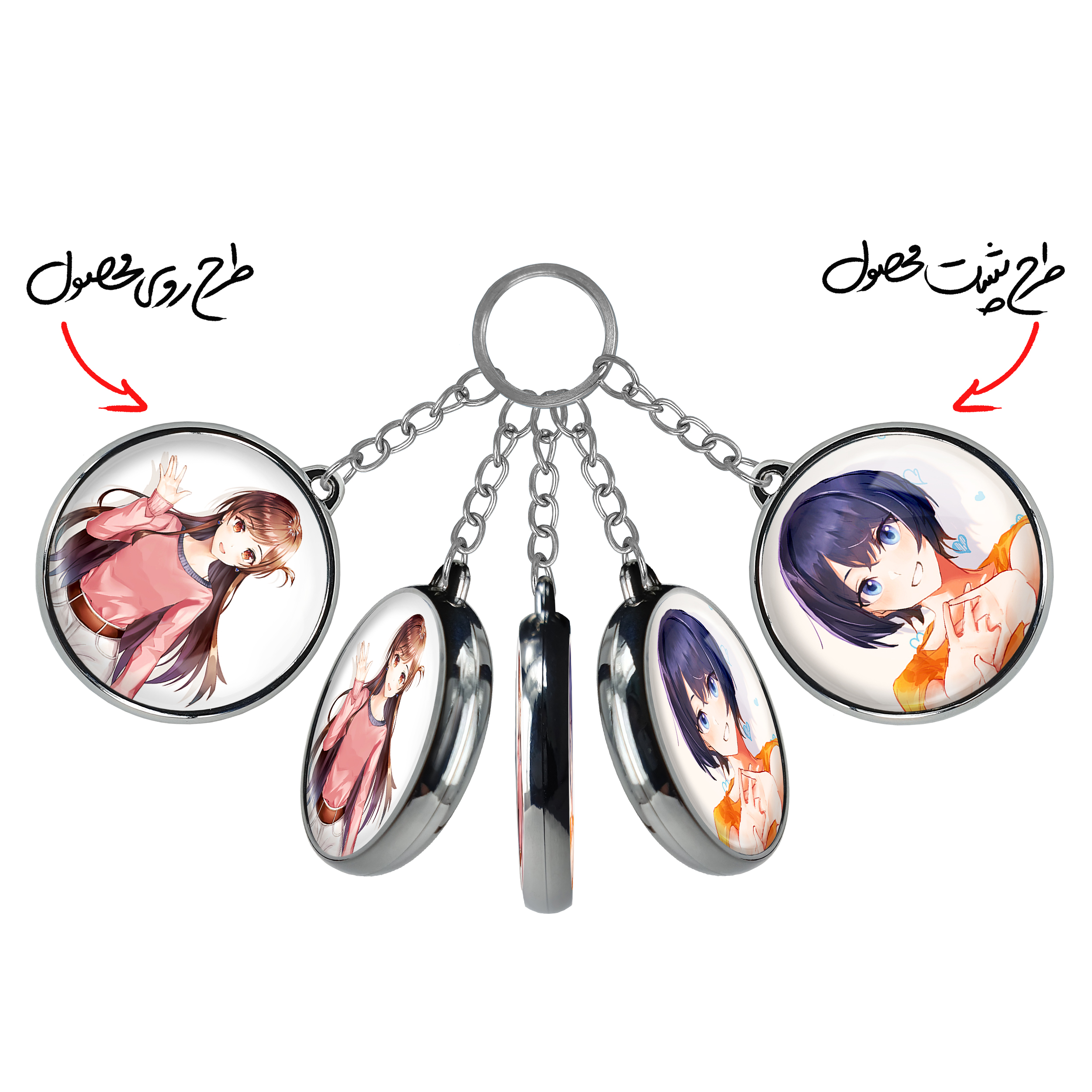 جاکلیدی دوطرفه چیزورو ایچینوز انیمه کانوجواوکاری خندالو محصولی کاربردی و جدید است که در هر دو سمت محصول، تصویری متفاوت اما از یک موضوع چاپ شده و تفاوت اصلی آن با جاکلیدی های یک طرفه در همین است که هر دو سمت پشت و روی جاکلیدی، طرحی دیدنی و جذاب دارد. همچنین رینگ بکار برده شده برای دور طرح ها آبکاری کروم درجه یک و رنگ ثابت است و برخلاف سایر محصولات مشابه، از رنگ های متفرقه و یا سفید استفاده نشده، که این مهم، زیبایی محصول نهایی را چند برابر کرده است. جاکلیدی های دوطرفه چیزورو ایچینوز انیمه کانوجواوکاری با استفاده از روکش سلفون براق ضدخش تولید شده که خاصیت ضدخش بودن آن عمر مفید استفاده از جاکلیدی ها را افزایش میدهد. چاپ جاکلیدی ها با دستگاه های استاندارد و با بهترین سطح کیفیت صورت گرفته و طرح با شفافیتی مثال زدنی و با سلفون چسبی تولید شده است که باعث شده محصول نهایی بدون شکست نور دیده شود. همچنین بسته بندی جذاب و مینیمال جاکلیدی دوطرفه چیزورو ایچینوز انیمه کانوجواوکاری ، آنها را محصولی مناسب هدیه کرده است. زنجیر و حلقه بکار برده شده در جاکلیدی خندالو از نوع حلقه ضخیم و محکم بوده و حین استفاده آسیب نمی بیند.