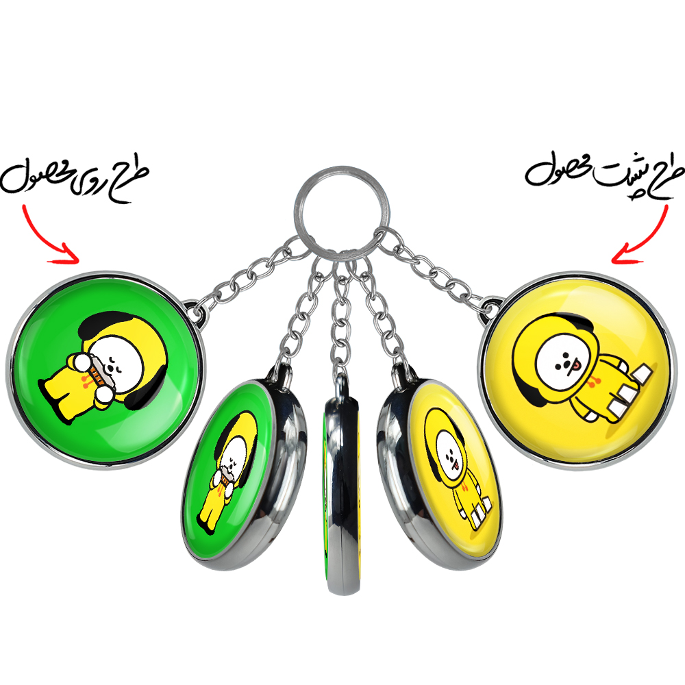 جاکلیدی دوطرفه چیمی BT21 Chimmyخندالو محصولی کاربردی و جدید است که در هر دو سمت محصول، تصویری متفاوت اما از یک موضوع چاپ شده و تفاوت اصلی آن با جاکلیدی های یک طرفه در همین است که هر دو سمت پشت و روی جاکلیدی، طرحی دیدنی و جذاب دارد. همچنین رینگ بکار برده شده برای دور طرح ها آبکاری کروم درجه یک و رنگ ثابت است و برخلاف سایر محصولات مشابه، از رنگ های متفرقه و یا سفید استفاده نشده، که این مهم، زیبایی محصول نهایی را چند برابر کرده است. جاکلیدی های دوطرفه چیمی BT21 Chimmyبا استفاده از روکش سلفون براق ضدخش تولید شده که خاصیت ضدخش بودن آن عمر مفید استفاده از جاکلیدی ها را افزایش میدهد. چاپ جاکلیدی ها با دستگاه های استاندارد و با بهترین سطح کیفیت صورت گرفته و طرح با شفافیتی مثال زدنی و با سلفون چسبی تولید شده است که باعث شده محصول نهایی بدون شکست نور دیده شود. همچنین بسته بندی جذاب و مینیمال جاکلیدی دوطرفه چیمی BT21 Chimmy، آنها را محصولی مناسب هدیه کرده است. زنجیر و حلقه بکار برده شده در جاکلیدی خندالو از نوع حلقه ضخیم و محکم بوده و حین استفاده آسیب نمی بیند.