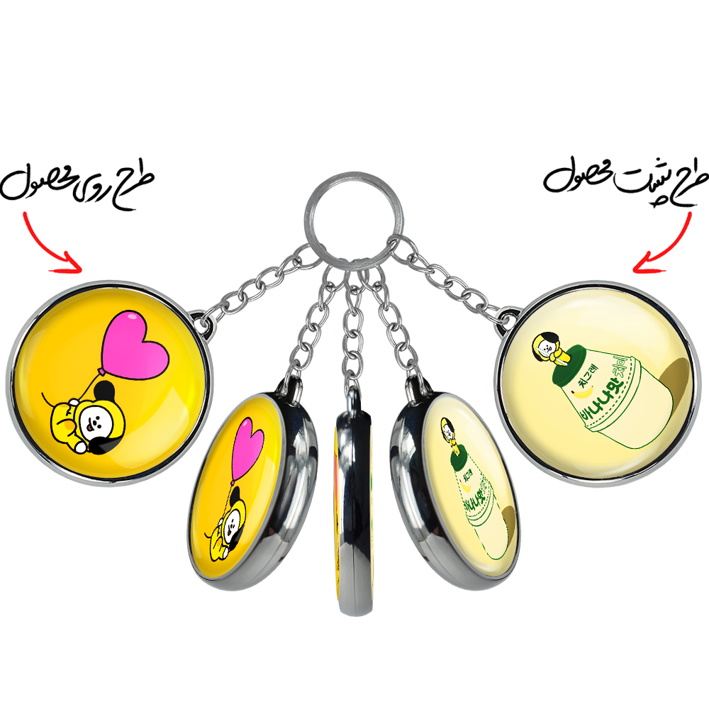 جاکلیدی دوطرفه چیمی BT21 Chimmyخندالو محصولی کاربردی و جدید است که در هر دو سمت محصول، تصویری متفاوت اما از یک موضوع چاپ شده و تفاوت اصلی آن با جاکلیدی های یک طرفه در همین است که هر دو سمت پشت و روی جاکلیدی، طرحی دیدنی و جذاب دارد. همچنین رینگ بکار برده شده برای دور طرح ها آبکاری کروم درجه یک و رنگ ثابت است و برخلاف سایر محصولات مشابه، از رنگ های متفرقه و یا سفید استفاده نشده، که این مهم، زیبایی محصول نهایی را چند برابر کرده است. جاکلیدی های دوطرفه چیمی BT21 Chimmyبا استفاده از روکش سلفون براق ضدخش تولید شده که خاصیت ضدخش بودن آن عمر مفید استفاده از جاکلیدی ها را افزایش میدهد. چاپ جاکلیدی ها با دستگاه های استاندارد و با بهترین سطح کیفیت صورت گرفته و طرح با شفافیتی مثال زدنی و با سلفون چسبی تولید شده است که باعث شده محصول نهایی بدون شکست نور دیده شود. همچنین بسته بندی جذاب و مینیمال جاکلیدی دوطرفه چیمی BT21 Chimmy، آنها را محصولی مناسب هدیه کرده است. زنجیر و حلقه بکار برده شده در جاکلیدی خندالو از نوع حلقه ضخیم و محکم بوده و حین استفاده آسیب نمی بیند.