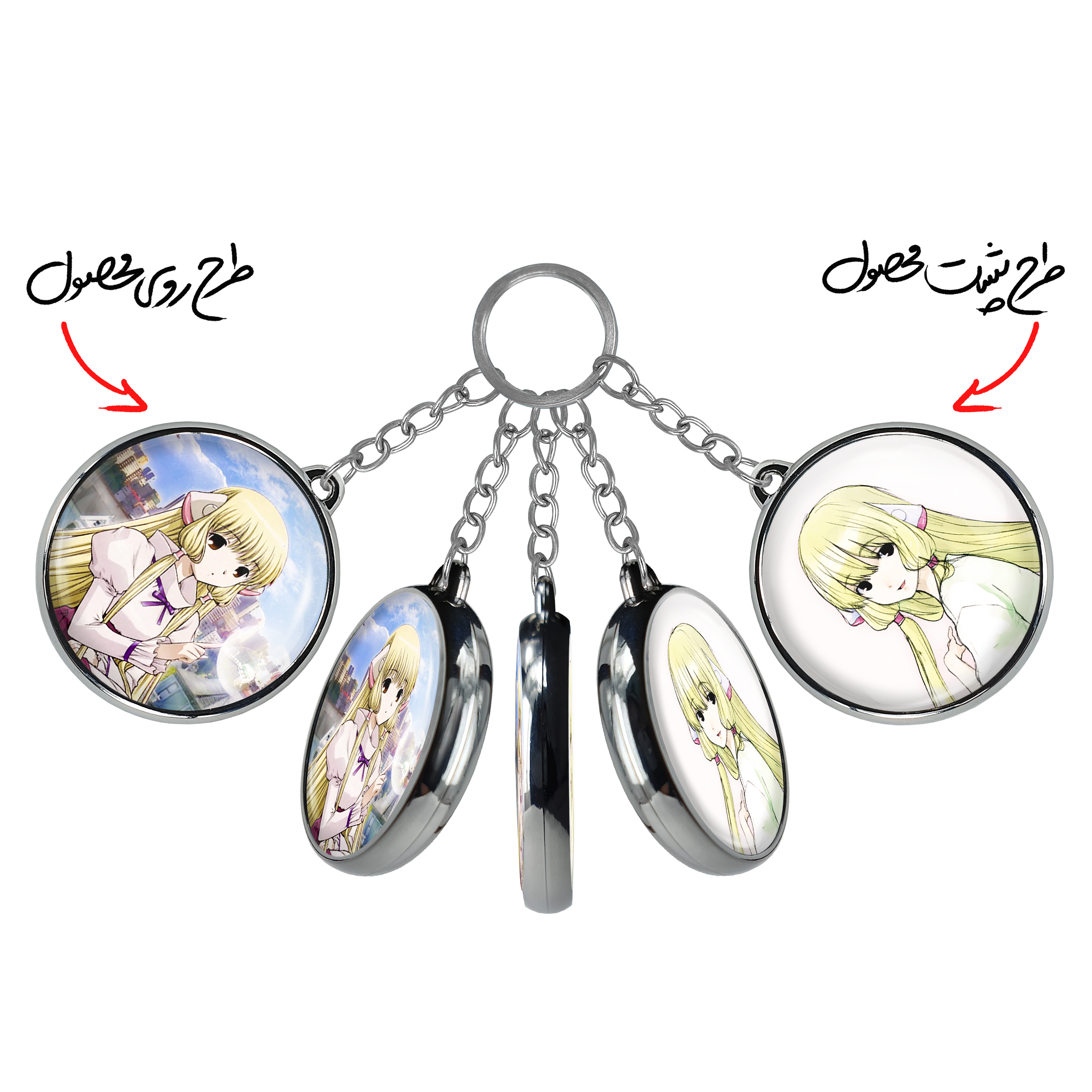 جاکلیدی دوطرفه چی انیمه چوبیتس Chobits خندالو محصولی کاربردی و جدید است که در هر دو سمت محصول، تصویری متفاوت اما از یک موضوع چاپ شده و تفاوت اصلی آن با جاکلیدی های یک طرفه در همین است که هر دو سمت پشت و روی جاکلیدی، طرحی دیدنی و جذاب دارد.