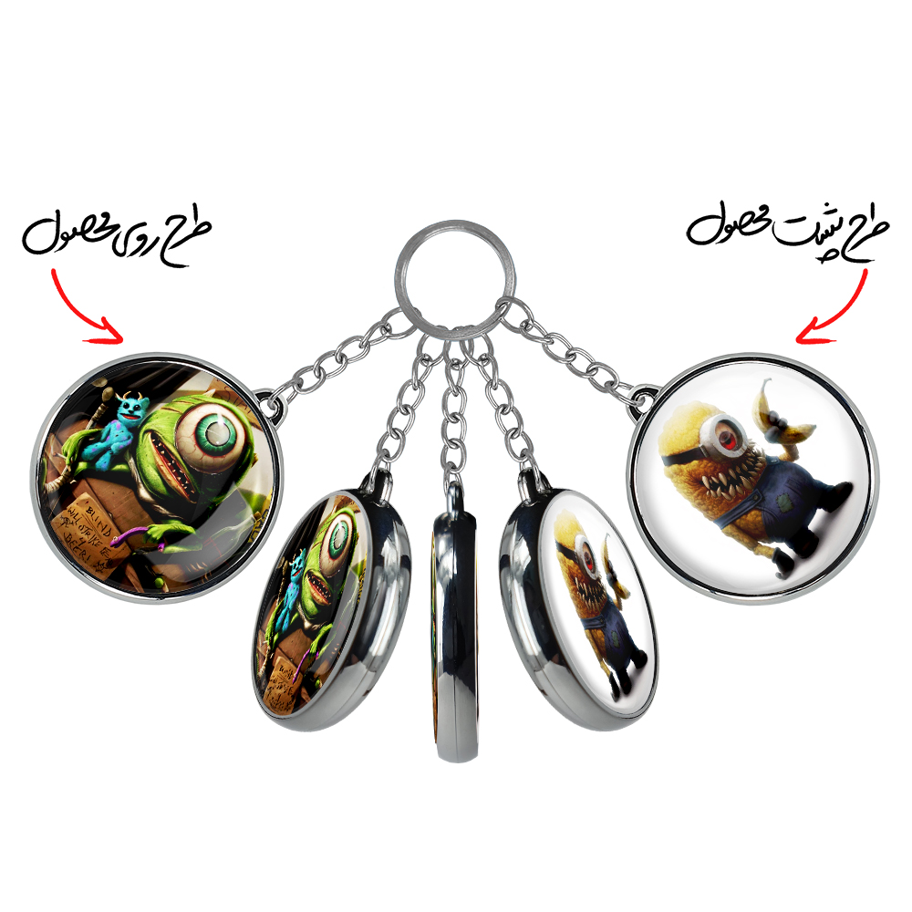 جاکلیدی دوطرفه کارخانه هیولاها خندالو محصولی کاربردی و جدید است که در هر دو سمت محصول، تصویری متفاوت اما از یک موضوع چاپ شده و تفاوت اصلی آن با جاکلیدی های یک طرفه در همین است که هر دو سمت پشت و روی جاکلیدی، طرحی دیدنی و جذاب دارد. همچنین رینگ بکار برده شده برای دور طرح ها آبکاری کروم درجه یک و رنگ ثابت است و برخلاف سایر محصولات مشابه، از رنگ های متفرقه و یا سفید استفاده نشده، که این مهم، زیبایی محصول نهایی را چند برابر کرده است. جاکلیدی های دوطرفه کارخانه هیولاها با استفاده از روکش سلفون براق ضدخش تولید شده که خاصیت ضدخش بودن آن عمر مفید استفاده از جاکلیدی ها را افزایش میدهد. چاپ جاکلیدی ها با دستگاه های استاندارد و با بهترین سطح کیفیت صورت گرفته و طرح با شفافیتی مثال زدنی و با سلفون چسبی تولید شده است که باعث شده محصول نهایی بدون شکست نور دیده شود. همچنین بسته بندی جذاب و مینیمال جاکلیدی دوطرفه کارخانه هیولاها ، آنها را محصولی مناسب هدیه کرده است. زنجیر و حلقه بکار برده شده در جاکلیدی خندالو از نوع حلقه ضخیم و محکم بوده و حین استفاده آسیب نمی بیند.