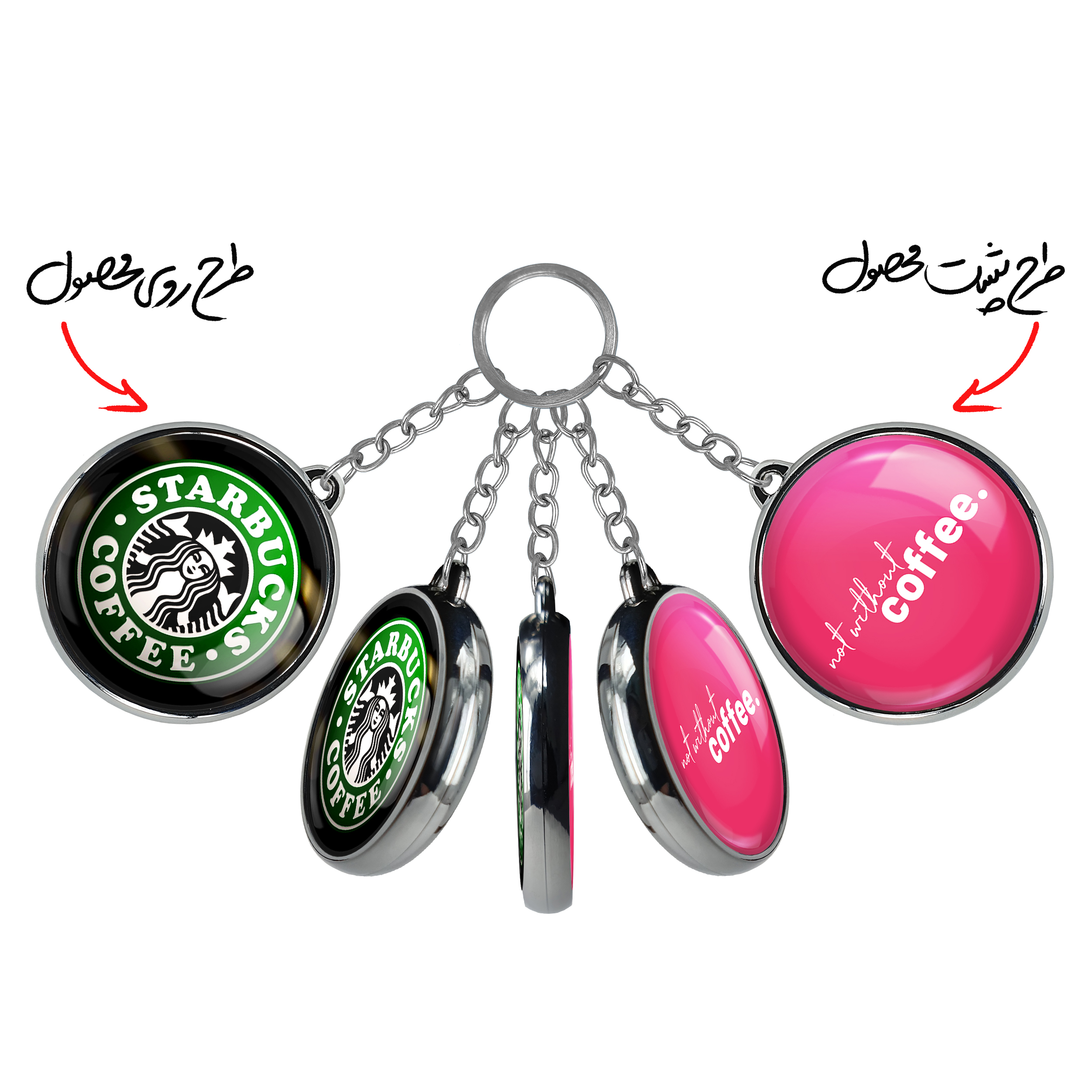 جاکلیدی دوطرفه کافی شاپ قهوهخندالو محصولی کاربردی و جدید است که در هر دو سمت محصول، تصویری متفاوت اما از یک موضوع چاپ شده و تفاوت اصلی آن با جاکلیدی های یک طرفه در همین است که هر دو سمت پشت و روی جاکلیدی، طرحی دیدنی و جذاب دارد.