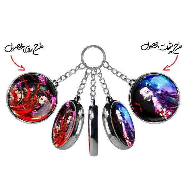 جاکلیدی دوطرفه کامادو تانجیرو انیمه شیطان کش خندالو محصولی کاربردی و جدید است که در هر دو سمت محصول، تصویری متفاوت اما از یک موضوع چاپ شده و تفاوت اصلی آن با جاکلیدی های یک طرفه در همین است که هر دو سمت پشت و روی جاکلیدی، طرحی دیدنی و جذاب دارد. همچنین رینگ بکار برده شده برای دور طرح ها آبکاری کروم درجه یک و رنگ ثابت است و برخلاف سایر محصولات مشابه، از رنگ های متفرقه و یا سفید استفاده نشده، که این مهم، زیبایی محصول نهایی را چند برابر کرده است. جاکلیدی های دوطرفه کامادو تانجیرو انیمه شیطان کش با استفاده از روکش سلفون براق ضدخش تولید شده که خاصیت ضدخش بودن آن عمر مفید استفاده از جاکلیدی ها را افزایش میدهد. چاپ جاکلیدی ها با دستگاه های استاندارد و با بهترین سطح کیفیت صورت گرفته و طرح با شفافیتی مثال زدنی و با سلفون چسبی تولید شده است که باعث شده محصول نهایی بدون شکست نور دیده شود. همچنین بسته بندی جذاب و مینیمال جاکلیدی دوطرفه کامادو تانجیرو انیمه شیطان کش ، آنها را محصولی مناسب هدیه کرده است. زنجیر و حلقه بکار برده شده در جاکلیدی خندالو از نوع حلقه ضخیم و محکم بوده و حین استفاده آسیب نمی بیند.
