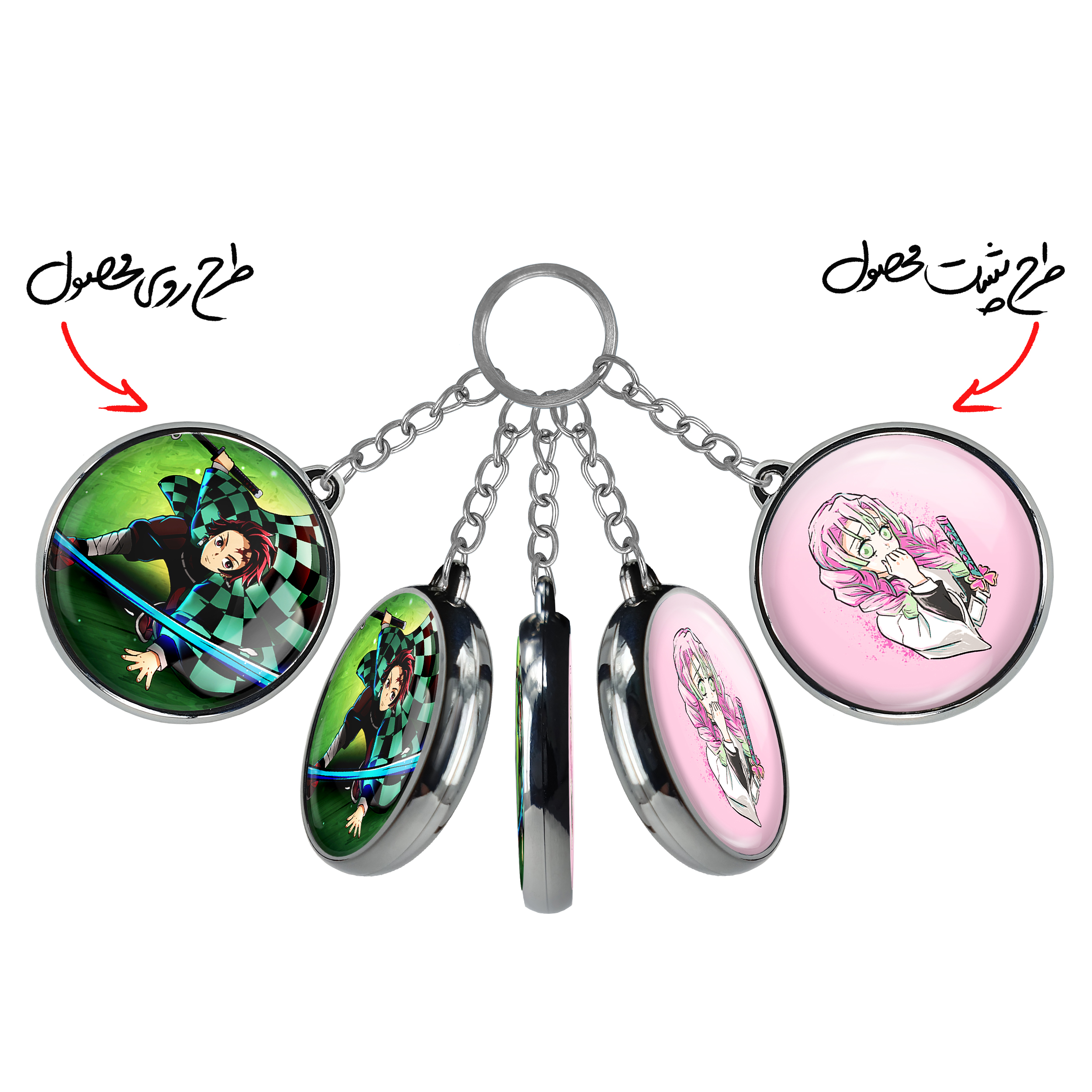 جاکلیدی دوطرفه کامادو تانجیرو انیمه شیطان کشخندالو محصولی کاربردی و جدید است که در هر دو سمت محصول، تصویری متفاوت اما از یک موضوع چاپ شده و تفاوت اصلی آن با جاکلیدی های یک طرفه در همین است که هر دو سمت پشت و روی جاکلیدی، طرحی دیدنی و جذاب دارد.