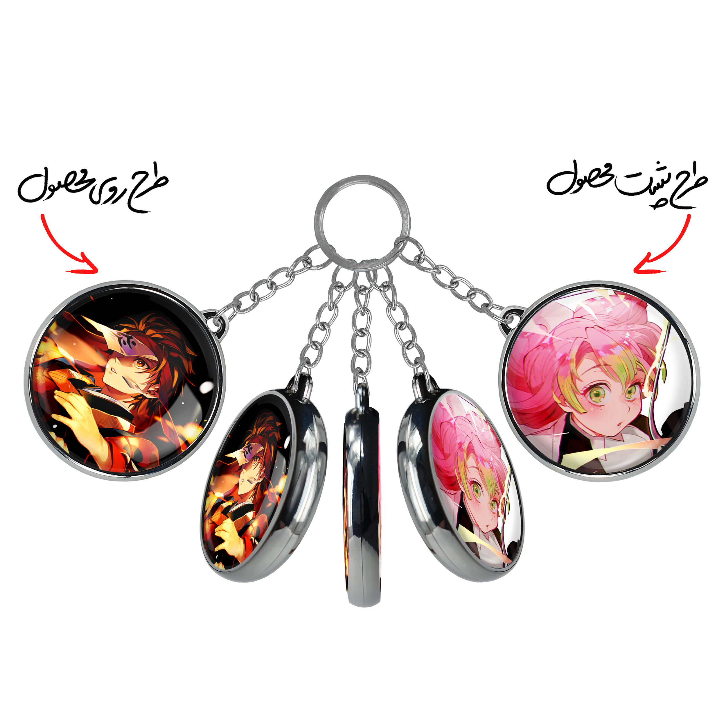 جاکلیدی دوطرفه کامادو تانجیرو انیمه شیطان کشخندالو محصولی کاربردی و جدید است که در هر دو سمت محصول، تصویری متفاوت اما از یک موضوع چاپ شده و تفاوت اصلی آن با جاکلیدی های یک طرفه در همین است که هر دو سمت پشت و روی جاکلیدی، طرحی دیدنی و جذاب دارد.