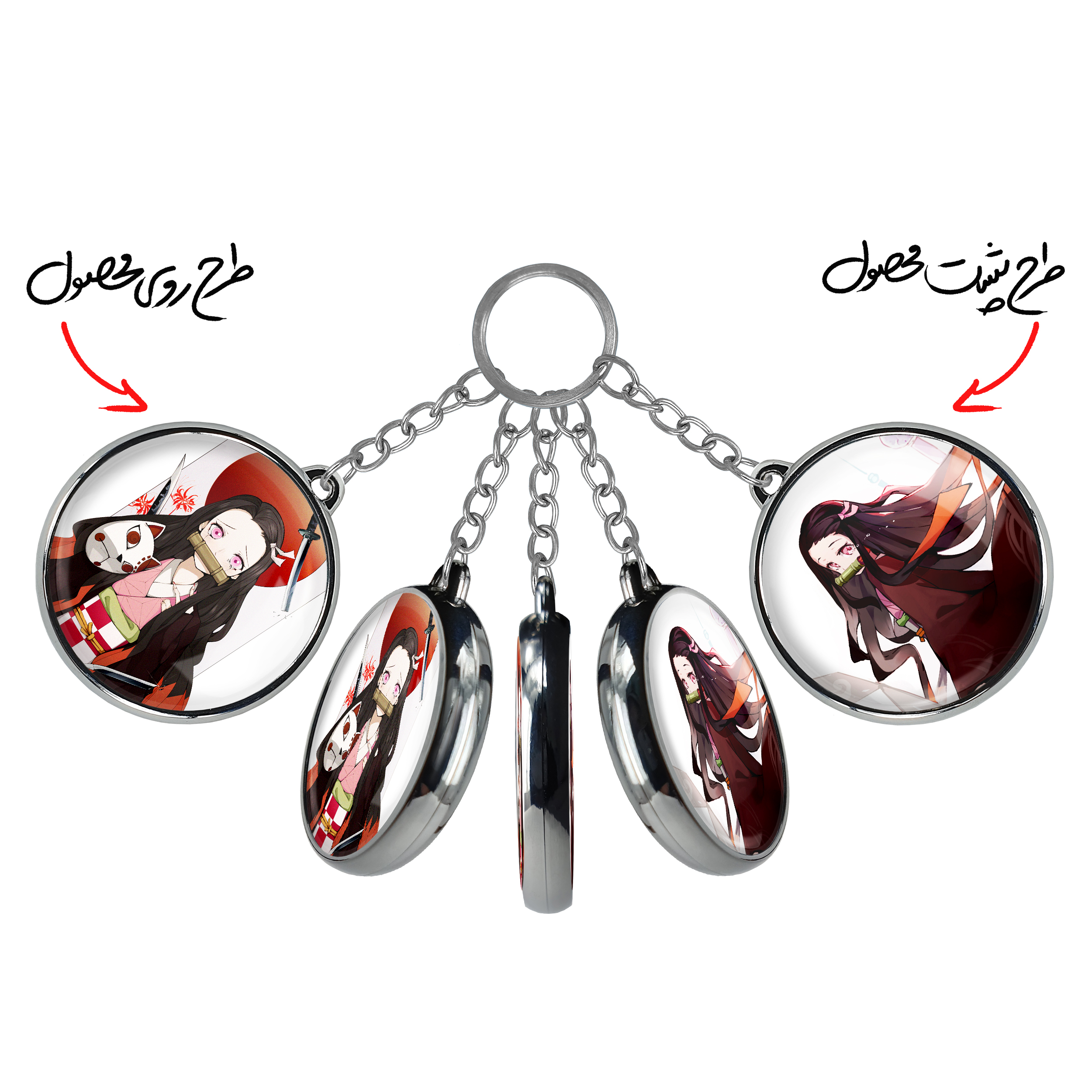 جاکلیدی دوطرفه کامادو نزوکو انیمه شیطان کش خندالو محصولی کاربردی و جدید است که در هر دو سمت محصول، تصویری متفاوت اما از یک موضوع چاپ شده و تفاوت اصلی آن با جاکلیدی های یک طرفه در همین است که هر دو سمت پشت و روی جاکلیدی، طرحی دیدنی و جذاب دارد.