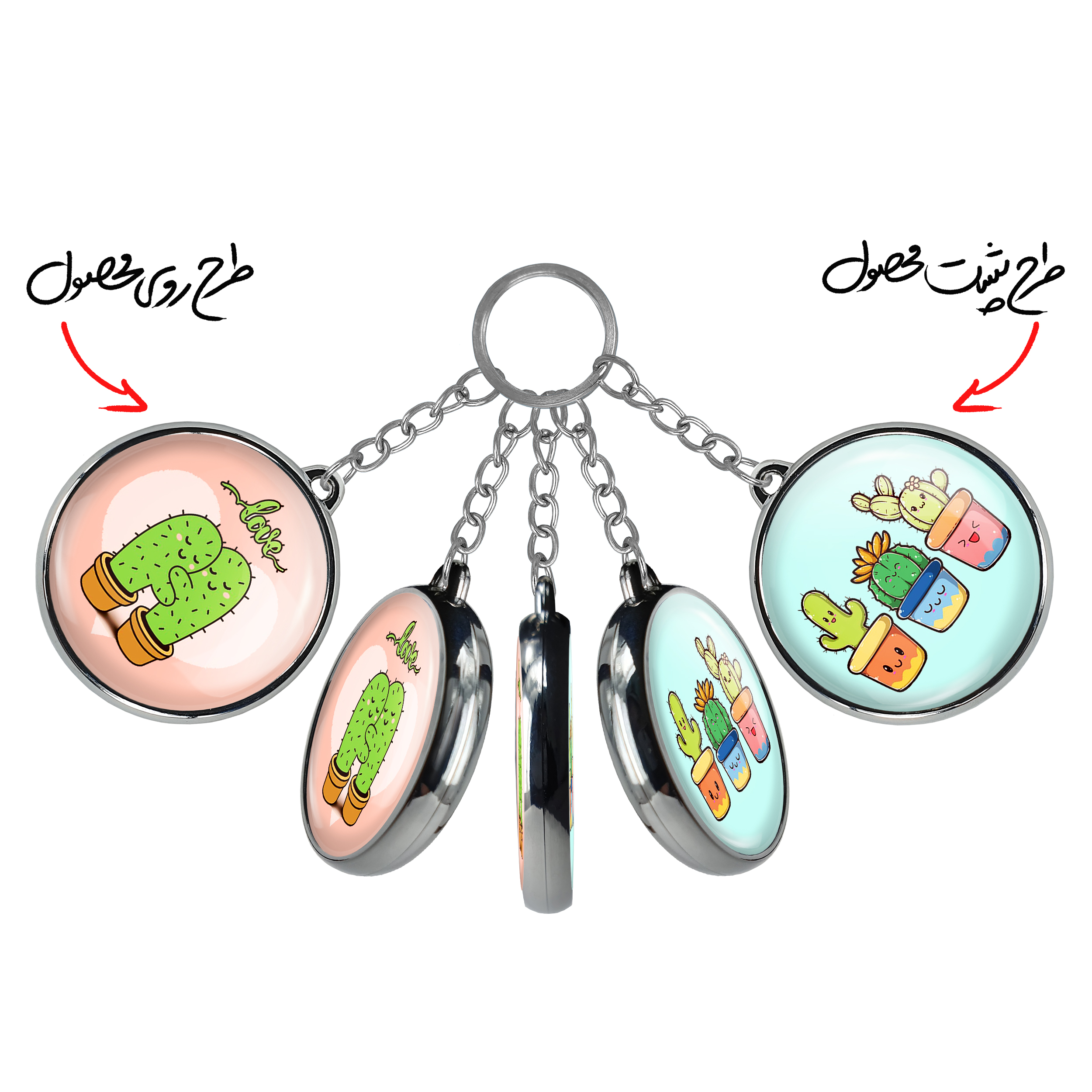 جاکلیدی دوطرفه کاکتوسخندالو محصولی کاربردی و جدید است که در هر دو سمت محصول، تصویری متفاوت اما از یک موضوع چاپ شده و تفاوت اصلی آن با جاکلیدی های یک طرفه در همین است که هر دو سمت پشت و روی جاکلیدی، طرحی دیدنی و جذاب دارد.