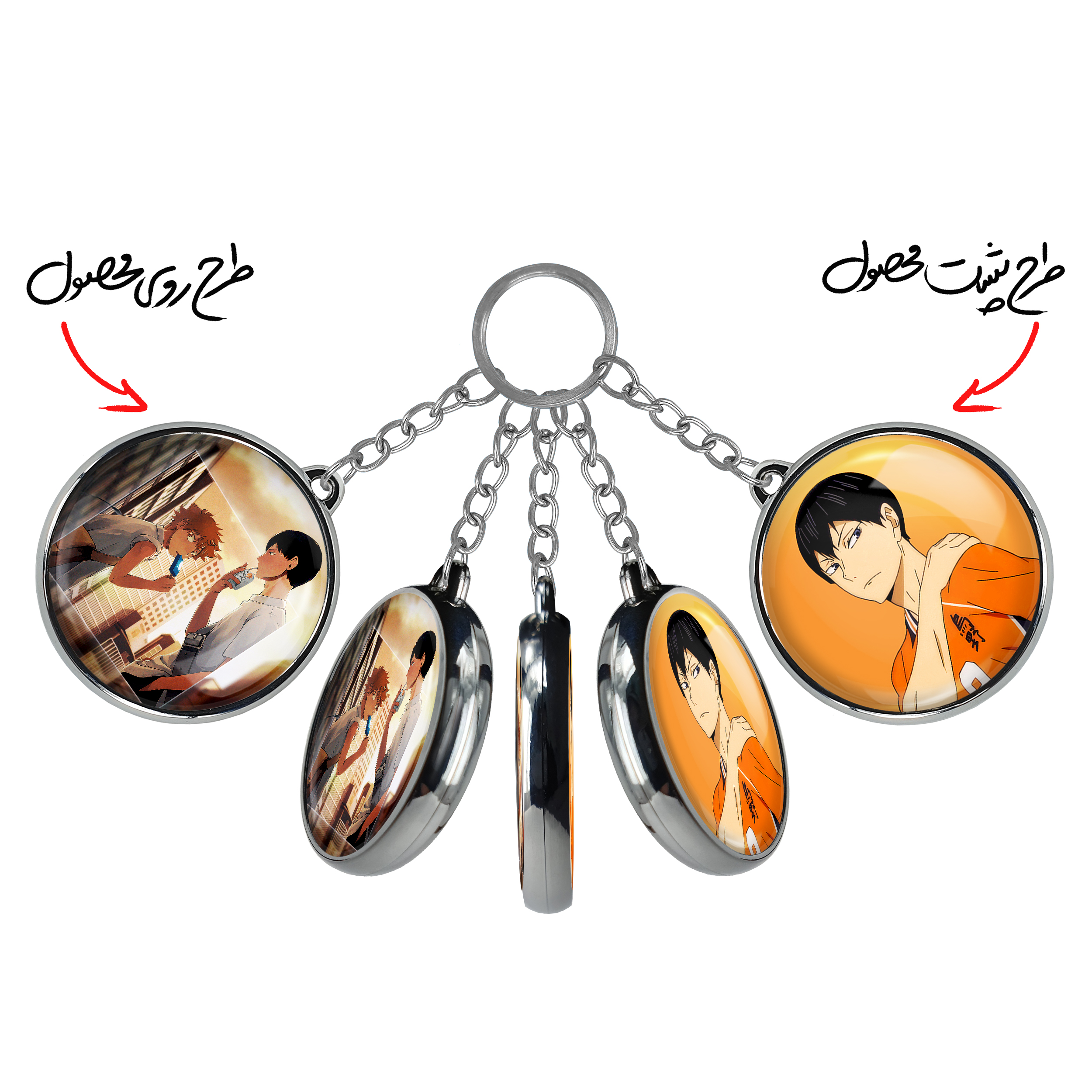 جاکلیدی دوطرفه کاگیاما و هیناتا انیمه هایکیو Haikyu خندالو محصولی کاربردی و جدید است که در هر دو سمت محصول، تصویری متفاوت اما از یک موضوع چاپ شده و تفاوت اصلی آن با جاکلیدی های یک طرفه در همین است که هر دو سمت پشت و روی جاکلیدی، طرحی دیدنی و جذاب دارد.