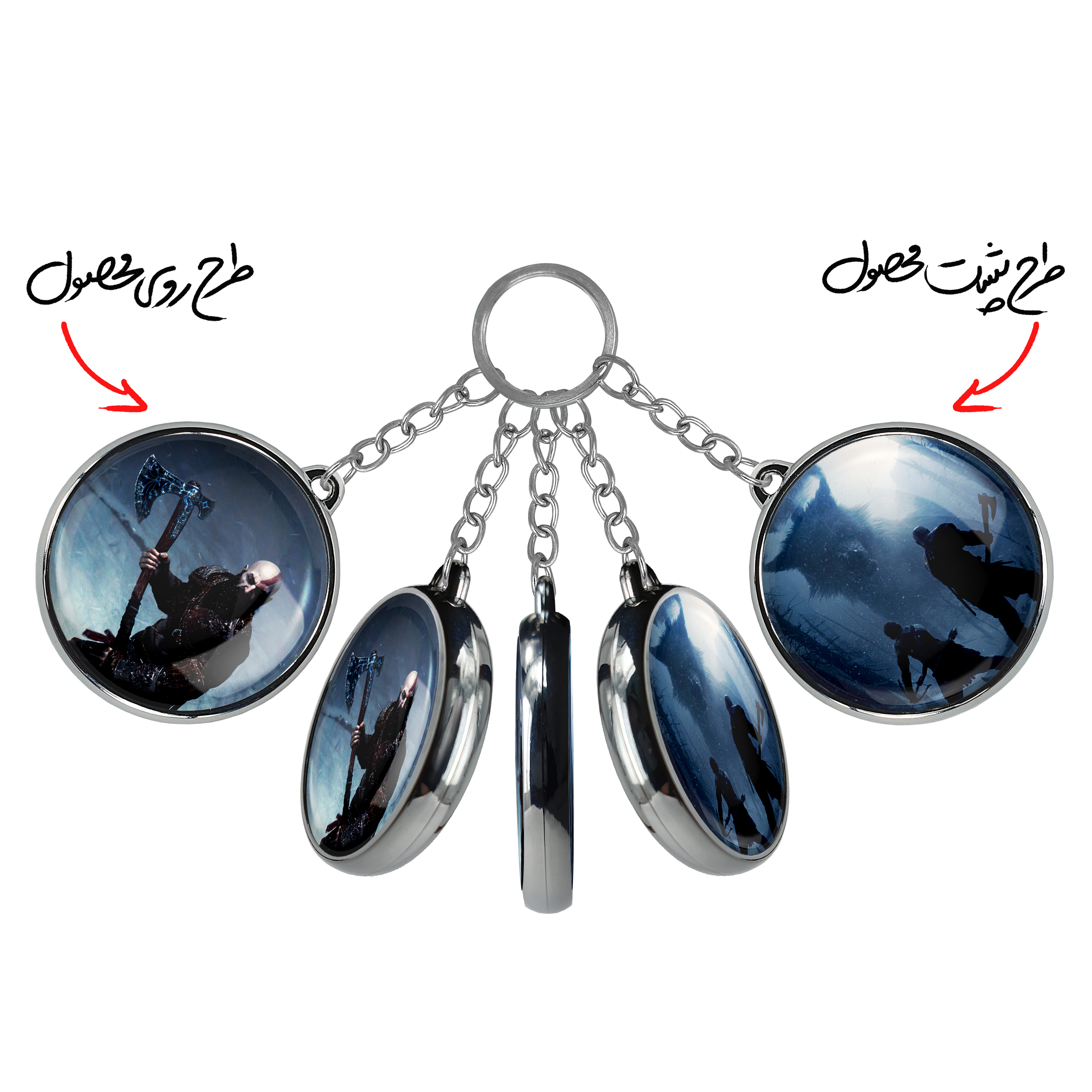 جاکلیدی دوطرفه کریتوس و اتریوس گاد آف وارخندالو محصولی کاربردی و جدید است که در هر دو سمت محصول، تصویری متفاوت اما از یک موضوع چاپ شده و تفاوت اصلی آن با جاکلیدی های یک طرفه در همین است که هر دو سمت پشت و روی جاکلیدی، طرحی دیدنی و جذاب دارد. همچنین رینگ بکار برده شده برای دور طرح ها آبکاری کروم درجه یک و رنگ ثابت است و برخلاف سایر محصولات مشابه، از رنگ های متفرقه و یا سفید استفاده نشده، که این مهم، زیبایی محصول نهایی را چند برابر کرده است. جاکلیدی های دوطرفه کریتوس و اتریوس گاد آف واربا استفاده از روکش سلفون براق ضدخش تولید شده که خاصیت ضدخش بودن آن عمر مفید استفاده از جاکلیدی ها را افزایش میدهد. چاپ جاکلیدی ها با دستگاه های استاندارد و با بهترین سطح کیفیت صورت گرفته و طرح با شفافیتی مثال زدنی و با سلفون چسبی تولید شده است که باعث شده محصول نهایی بدون شکست نور دیده شود. همچنین بسته بندی جذاب و مینیمال جاکلیدی دوطرفه کریتوس و اتریوس گاد آف وار، آنها را محصولی مناسب هدیه کرده است. زنجیر و حلقه بکار برده شده در جاکلیدی خندالو از نوع حلقه ضخیم و محکم بوده و حین استفاده آسیب نمی بیند.