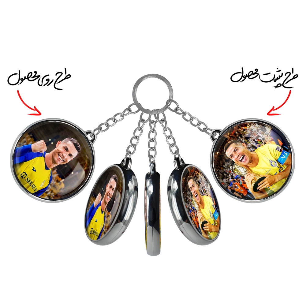 جاکلیدی دوطرفه کریستیانو رونالدو خندالو محصولی کاربردی و جدید است که در هر دو سمت محصول، تصویری متفاوت اما از یک موضوع چاپ شده و تفاوت اصلی آن با جاکلیدی های یک طرفه در همین است که هر دو سمت پشت و روی جاکلیدی، طرحی دیدنی و جذاب دارد. همچنین رینگ بکار برده شده برای دور طرح ها آبکاری کروم درجه یک و رنگ ثابت است و برخلاف سایر محصولات مشابه، از رنگ های متفرقه و یا سفید استفاده نشده، که این مهم، زیبایی محصول نهایی را چند برابر کرده است. جاکلیدی های دوطرفه کریستیانو رونالدو با استفاده از روکش سلفون براق ضدخش تولید شده که خاصیت ضدخش بودن آن عمر مفید استفاده از جاکلیدی ها را افزایش میدهد. چاپ جاکلیدی ها با دستگاه های استاندارد و با بهترین سطح کیفیت صورت گرفته و طرح با شفافیتی مثال زدنی و با سلفون چسبی تولید شده است که باعث شده محصول نهایی بدون شکست نور دیده شود. همچنین بسته بندی جذاب و مینیمال جاکلیدی دوطرفه کریستیانو رونالدو، آنها را محصولی مناسب هدیه کرده است. زنجیر و حلقه بکار برده شده در جاکلیدی خندالو از نوع حلقه ضخیم و محکم بوده و حین استفاده آسیب نمی بیند.