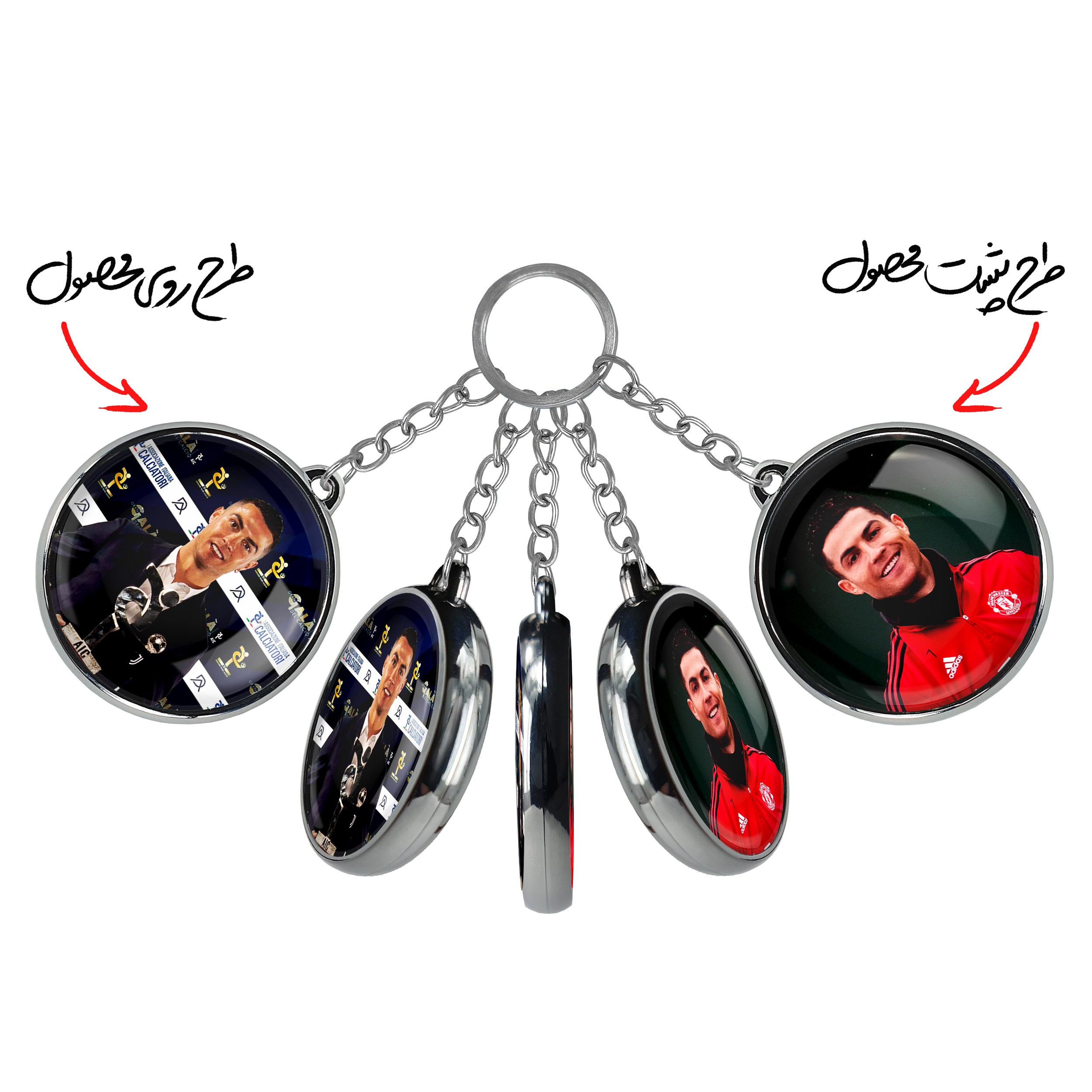 جاکلیدی دوطرفه کریستیانو رونالدو خندالو محصولی کاربردی و جدید است که در هر دو سمت محصول، تصویری متفاوت اما از یک موضوع چاپ شده و تفاوت اصلی آن با جاکلیدی های یک طرفه در همین است که هر دو سمت پشت و روی جاکلیدی، طرحی دیدنی و جذاب دارد.