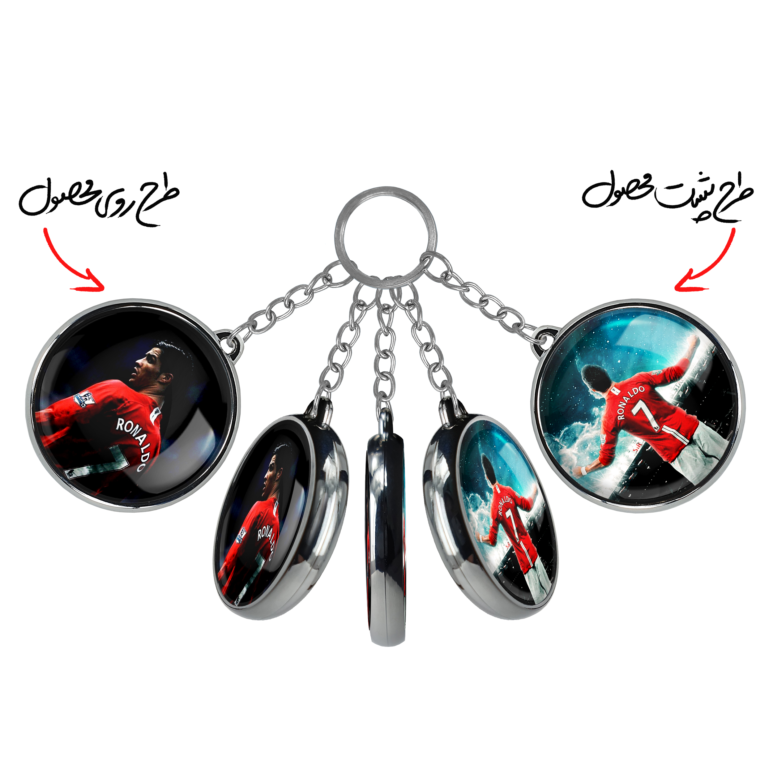 جاکلیدی دوطرفه کریستیانو رونالدو خندالو محصولی کاربردی و جدید است که در هر دو سمت محصول، تصویری متفاوت اما از یک موضوع چاپ شده و تفاوت اصلی آن با جاکلیدی های یک طرفه در همین است که هر دو سمت پشت و روی جاکلیدی، طرحی دیدنی و جذاب دارد.