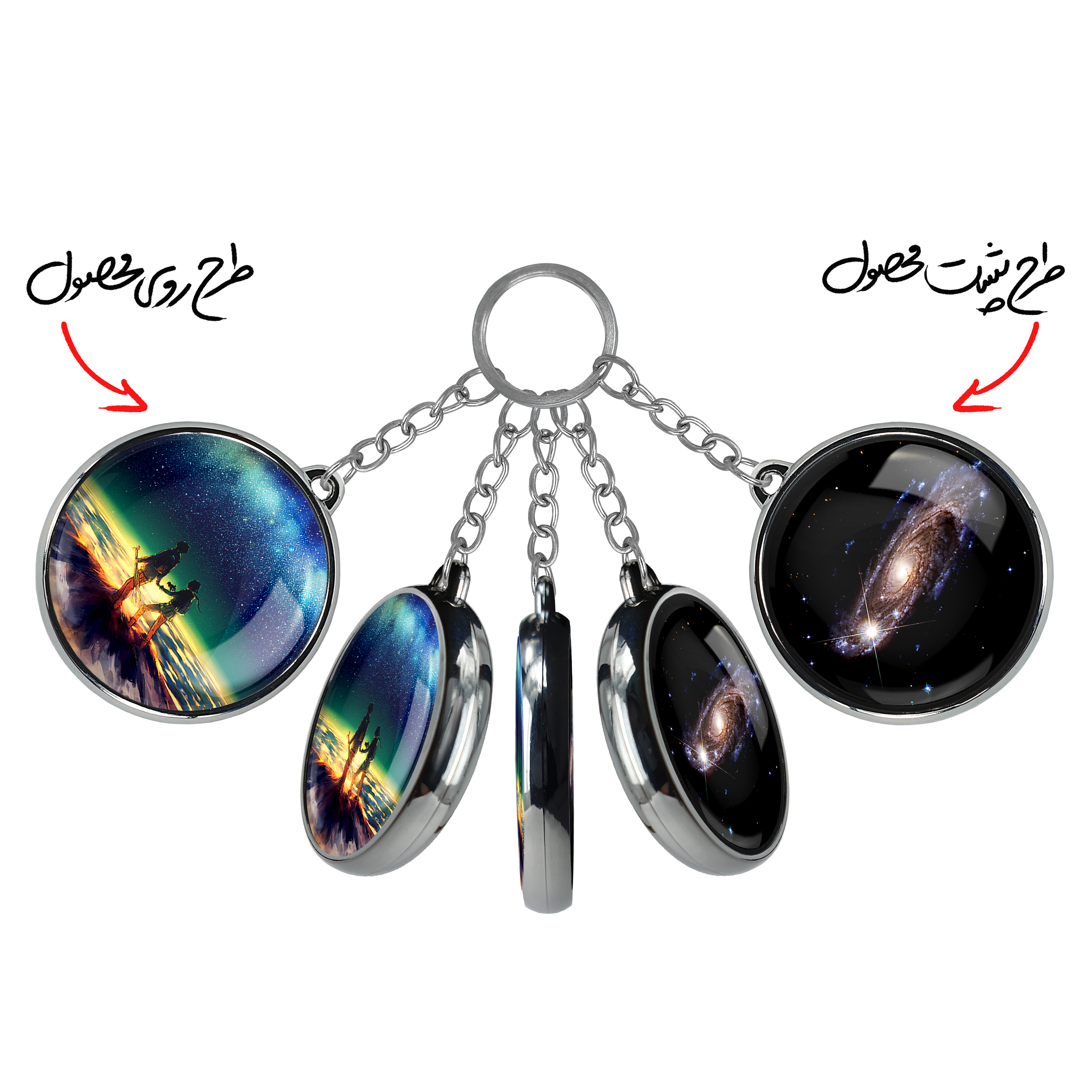 جاکلیدی دوطرفه کهکشان و سیاره هاخندالو محصولی کاربردی و جدید است که در هر دو سمت محصول، تصویری متفاوت اما از یک موضوع چاپ شده و تفاوت اصلی آن با جاکلیدی های یک طرفه در همین است که هر دو سمت پشت و روی جاکلیدی، طرحی دیدنی و جذاب دارد.