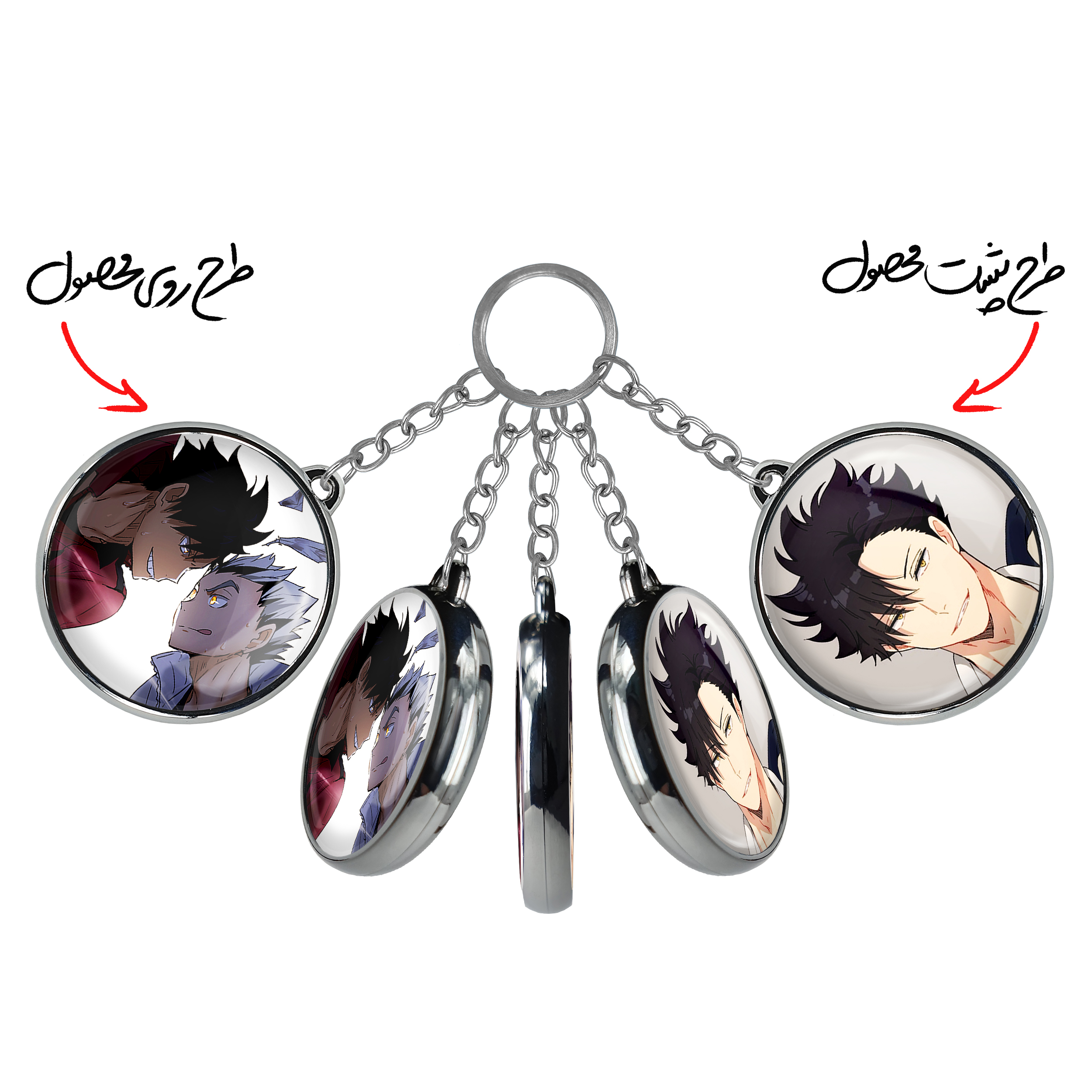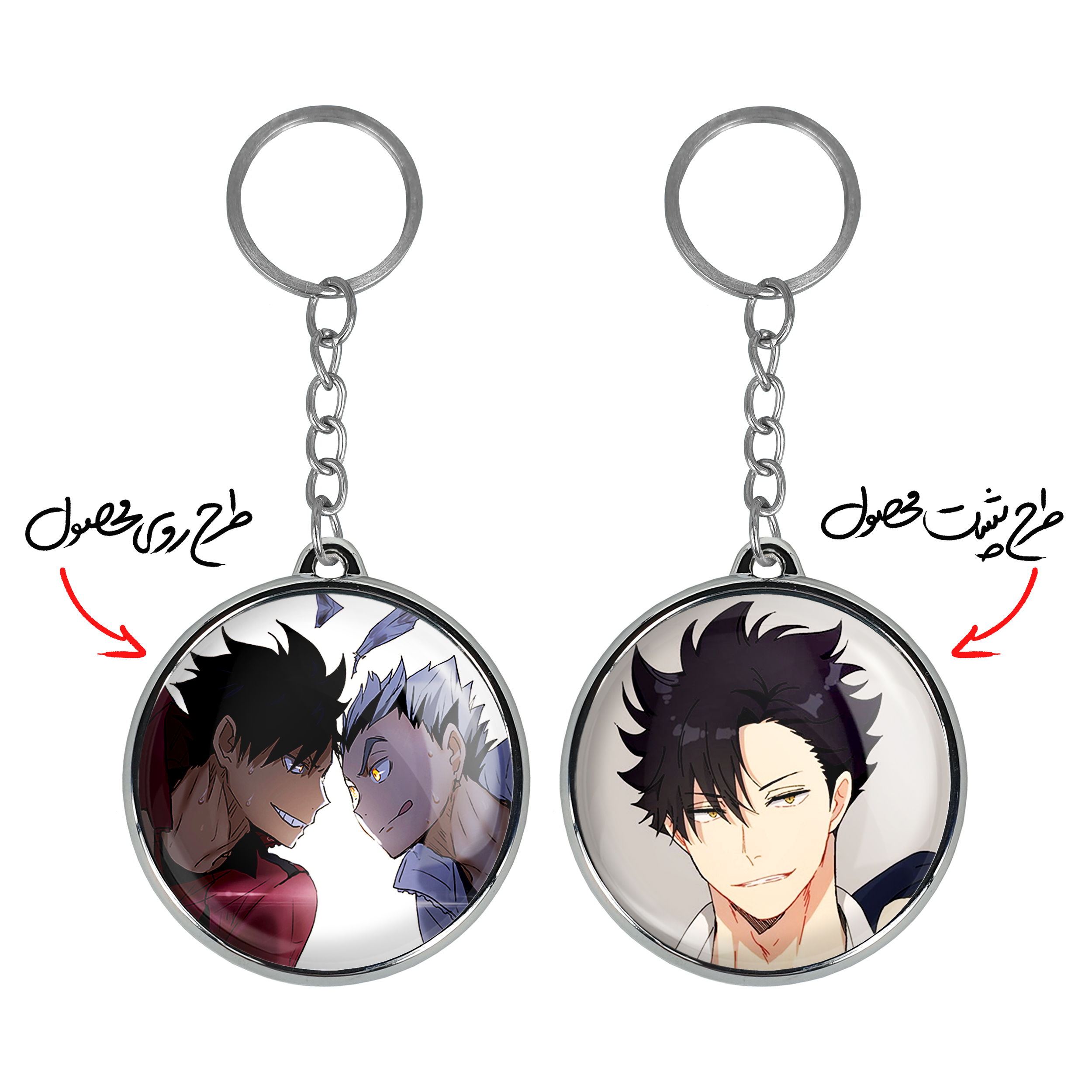 جاکلیدی دوطرفه کوتارو و کورو انیمه هایکیو Haikyu خندالو محصولی کاربردی و جدید است که در هر دو سمت محصول، تصویری متفاوت اما از یک موضوع چاپ شده و تفاوت اصلی آن با جاکلیدی های یک طرفه در همین است که هر دو سمت پشت و روی جاکلیدی، طرحی دیدنی و جذاب دارد. همچنین رینگ بکار برده شده برای دور طرح ها آبکاری کروم درجه یک و رنگ ثابت است و برخلاف سایر محصولات مشابه، از رنگ های متفرقه و یا سفید استفاده نشده، که این مهم، زیبایی محصول نهایی را چند برابر کرده است. جاکلیدی های دوطرفه کوتارو و کورو انیمه هایکیو Haikyu با استفاده از روکش سلفون براق ضدخش تولید شده که خاصیت ضدخش بودن آن عمر مفید استفاده از جاکلیدی ها را افزایش میدهد. چاپ جاکلیدی ها با دستگاه های استاندارد و با بهترین سطح کیفیت صورت گرفته و طرح با شفافیتی مثال زدنی و با سلفون چسبی تولید شده است که باعث شده محصول نهایی بدون شکست نور دیده شود. همچنین بسته بندی جذاب و مینیمال جاکلیدی دوطرفه کوتارو و کورو انیمه هایکیو Haikyu ، آنها را محصولی مناسب هدیه کرده است. زنجیر و حلقه بکار برده شده در جاکلیدی خندالو از نوع حلقه ضخیم و محکم بوده و حین استفاده آسیب نمی بیند.