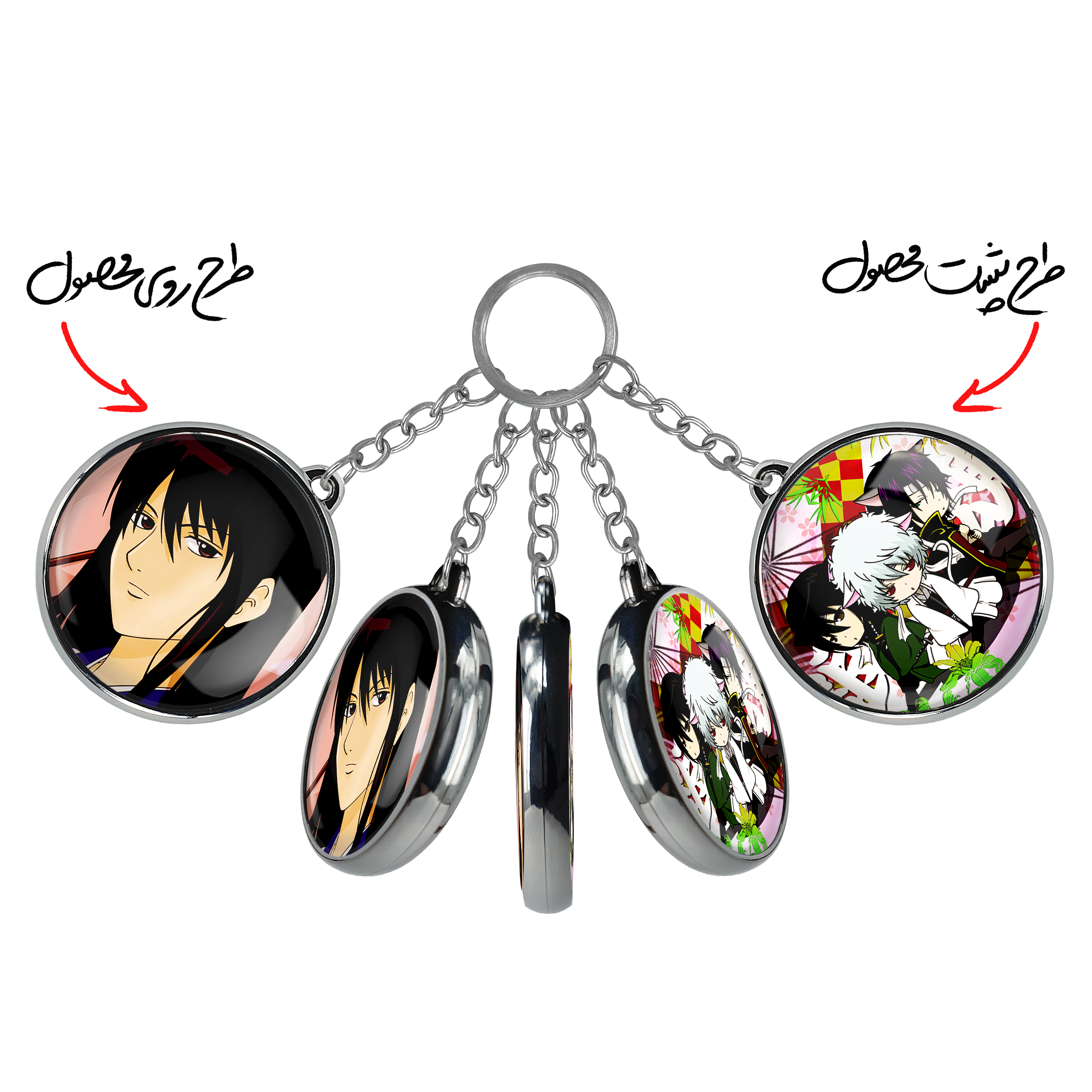 جاکلیدی دوطرفه کوتارو کاتسورا انیمه گینتاما خندالو محصولی کاربردی و جدید است که در هر دو سمت محصول، تصویری متفاوت اما از یک موضوع چاپ شده و تفاوت اصلی آن با جاکلیدی های یک طرفه در همین است که هر دو سمت پشت و روی جاکلیدی، طرحی دیدنی و جذاب دارد. همچنین رینگ بکار برده شده برای دور طرح ها آبکاری کروم درجه یک و رنگ ثابت است و برخلاف سایر محصولات مشابه، از رنگ های متفرقه و یا سفید استفاده نشده، که این مهم، زیبایی محصول نهایی را چند برابر کرده است. جاکلیدی های دوطرفه کوتارو کاتسورا انیمه گینتاما با استفاده از روکش سلفون براق ضدخش تولید شده که خاصیت ضدخش بودن آن عمر مفید استفاده از جاکلیدی ها را افزایش میدهد. چاپ جاکلیدی ها با دستگاه های استاندارد و با بهترین سطح کیفیت صورت گرفته و طرح با شفافیتی مثال زدنی و با سلفون چسبی تولید شده است که باعث شده محصول نهایی بدون شکست نور دیده شود. همچنین بسته بندی جذاب و مینیمال جاکلیدی دوطرفه کوتارو کاتسورا انیمه گینتاما ، آنها را محصولی مناسب هدیه کرده است. زنجیر و حلقه بکار برده شده در جاکلیدی خندالو از نوع حلقه ضخیم و محکم بوده و حین استفاده آسیب نمی بیند.