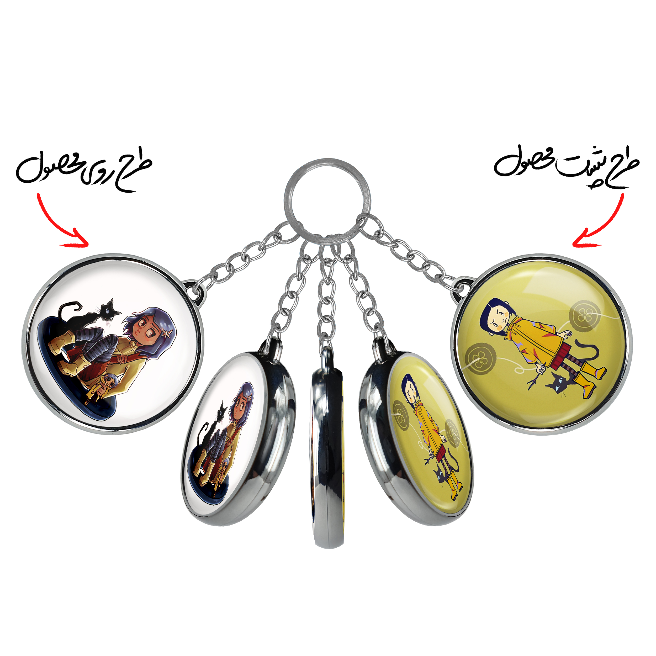 جاکلیدی دوطرفه کورالاین Coraline خندالو محصولی کاربردی و جدید است که در هر دو سمت محصول، تصویری متفاوت اما از یک موضوع چاپ شده و تفاوت اصلی آن با جاکلیدی های یک طرفه در همین است که هر دو سمت پشت و روی جاکلیدی، طرحی دیدنی و جذاب دارد.
