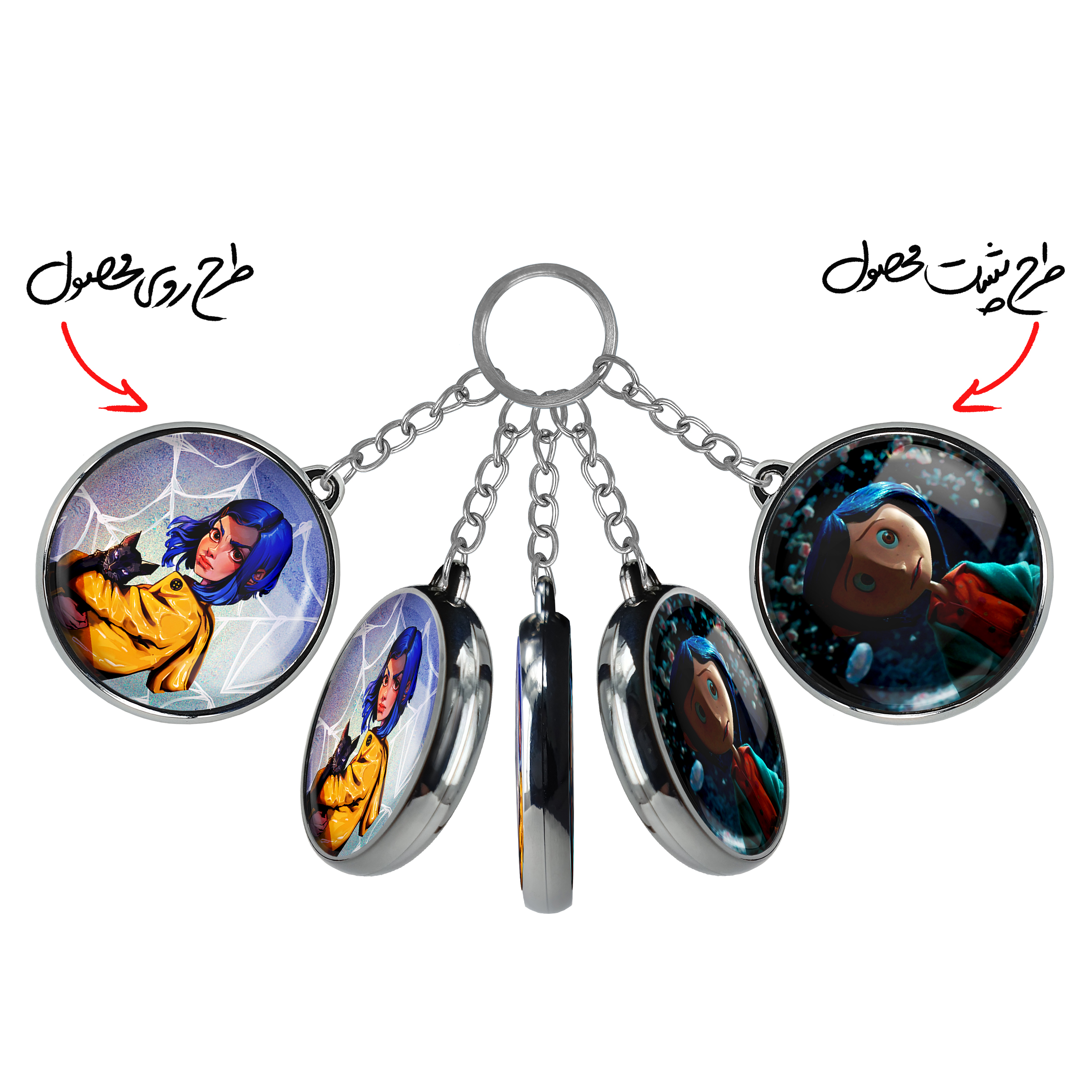 جاکلیدی دوطرفه کورالاین Coraline خندالو محصولی کاربردی و جدید است که در هر دو سمت محصول، تصویری متفاوت اما از یک موضوع چاپ شده و تفاوت اصلی آن با جاکلیدی های یک طرفه در همین است که هر دو سمت پشت و روی جاکلیدی، طرحی دیدنی و جذاب دارد.
