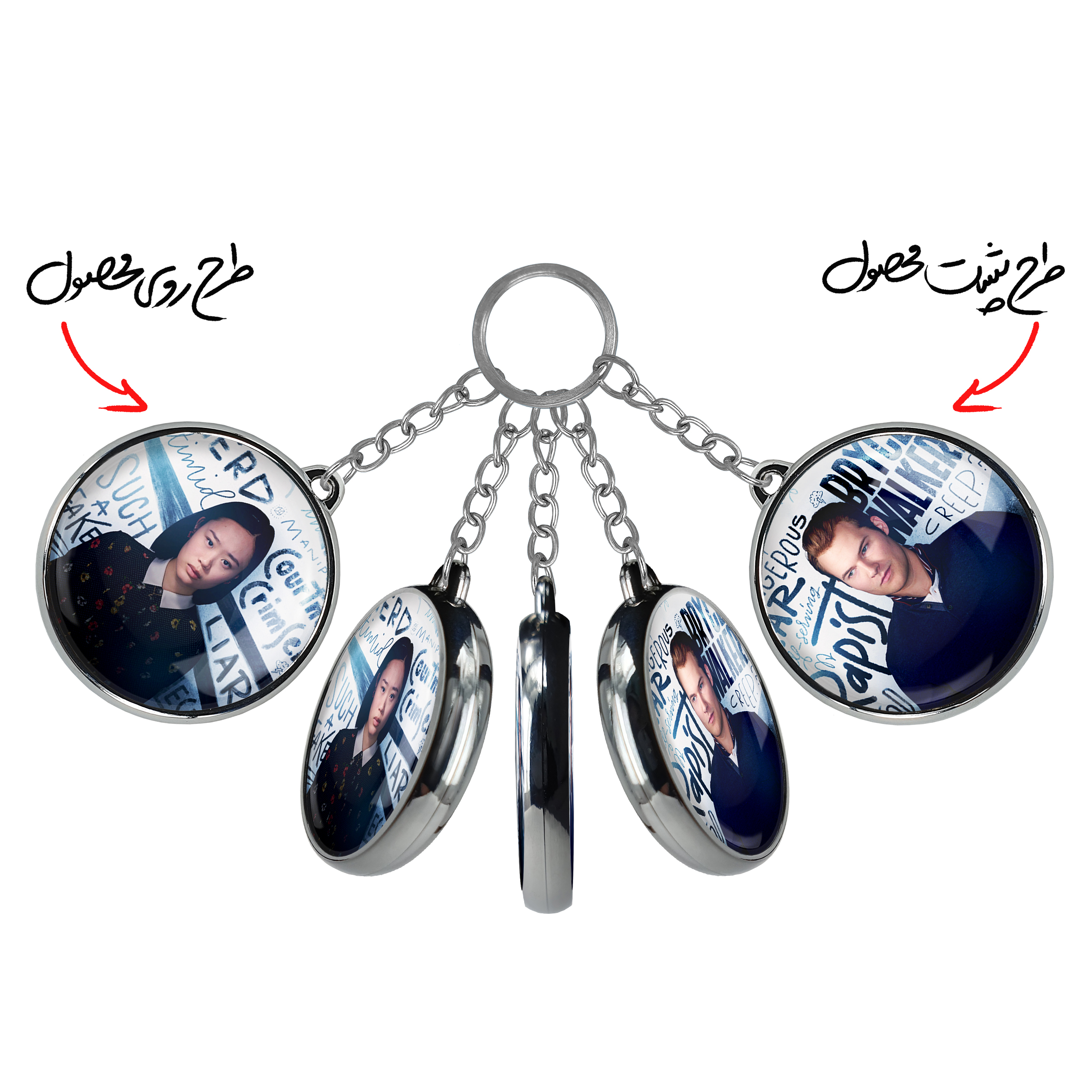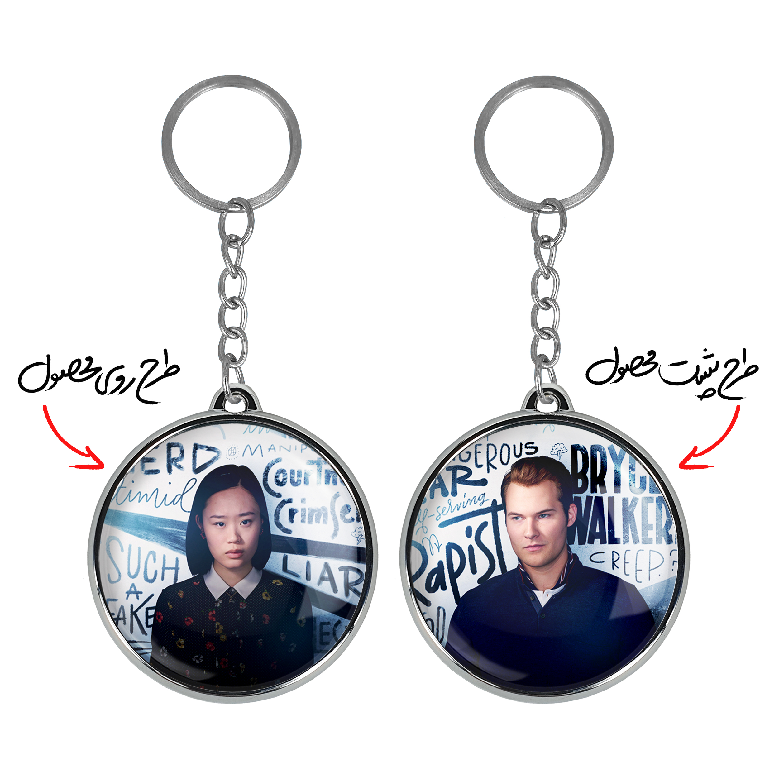 جاکلیدی دوطرفه کورتنی 13دلیل برای اینکه Reasons Why13 خندالو محصولی کاربردی و جدید است که در هر دو سمت محصول، تصویری متفاوت اما از یک موضوع چاپ شده و تفاوت اصلی آن با جاکلیدی های یک طرفه در همین است که هر دو سمت پشت و روی جاکلیدی، طرحی دیدنی و جذاب دارد. همچنین رینگ بکار برده شده برای دور طرح ها آبکاری کروم درجه یک و رنگ ثابت است و برخلاف سایر محصولات مشابه، از رنگ های متفرقه و یا سفید استفاده نشده، که این مهم، زیبایی محصول نهایی را چند برابر کرده است. جاکلیدی های دوطرفه کورتنی 13دلیل برای اینکه Reasons Why13 با استفاده از روکش سلفون براق ضدخش تولید شده که خاصیت ضدخش بودن آن عمر مفید استفاده از جاکلیدی ها را افزایش میدهد. چاپ جاکلیدی ها با دستگاه های استاندارد و با بهترین سطح کیفیت صورت گرفته و طرح با شفافیتی مثال زدنی و با سلفون چسبی تولید شده است که باعث شده محصول نهایی بدون شکست نور دیده شود. همچنین بسته بندی جذاب و مینیمال جاکلیدی دوطرفه کورتنی 13دلیل برای اینکه Reasons Why13 ، آنها را محصولی مناسب هدیه کرده است. زنجیر و حلقه بکار برده شده در جاکلیدی خندالو از نوع حلقه ضخیم و محکم بوده و حین استفاده آسیب نمی بیند.