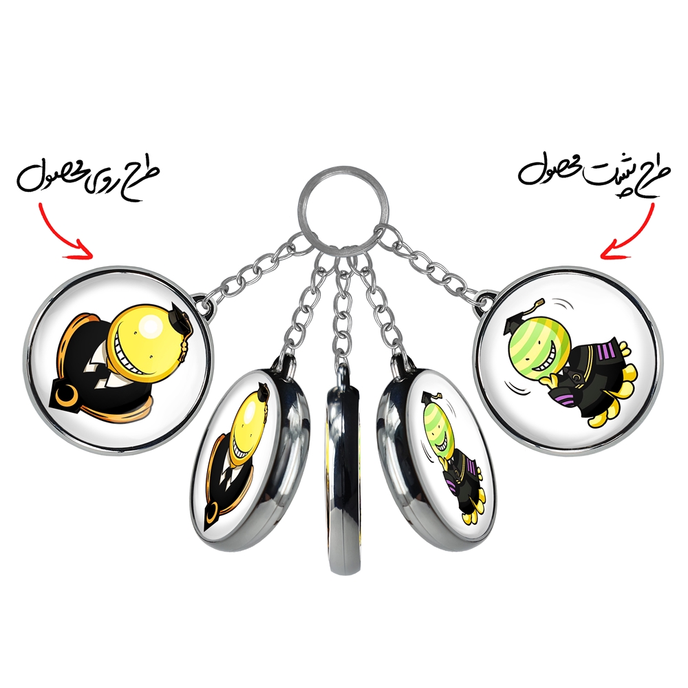 جاکلیدی دوطرفه کورو سنسی انیمه کلاس آدمکشی خندالو محصولی کاربردی و جدید است که در هر دو سمت محصول، تصویری متفاوت اما از یک موضوع چاپ شده و تفاوت اصلی آن با جاکلیدی های یک طرفه در همین است که هر دو سمت پشت و روی جاکلیدی، طرحی دیدنی و جذاب دارد. همچنین رینگ بکار برده شده برای دور طرح ها آبکاری کروم درجه یک و رنگ ثابت است و برخلاف سایر محصولات مشابه، از رنگ های متفرقه و یا سفید استفاده نشده، که این مهم، زیبایی محصول نهایی را چند برابر کرده است. جاکلیدی های دوطرفه کورو سنسی انیمه کلاس آدمکشی با استفاده از روکش سلفون براق ضدخش تولید شده که خاصیت ضدخش بودن آن عمر مفید استفاده از جاکلیدی ها را افزایش میدهد. چاپ جاکلیدی ها با دستگاه های استاندارد و با بهترین سطح کیفیت صورت گرفته و طرح با شفافیتی مثال زدنی و با سلفون چسبی تولید شده است که باعث شده محصول نهایی بدون شکست نور دیده شود. همچنین بسته بندی جذاب و مینیمال جاکلیدی دوطرفه کورو سنسی انیمه کلاس آدمکشی، آنها را محصولی مناسب هدیه کرده است. زنجیر و حلقه بکار برده شده در جاکلیدی خندالو از نوع حلقه ضخیم و محکم بوده و حین استفاده آسیب نمی بیند.