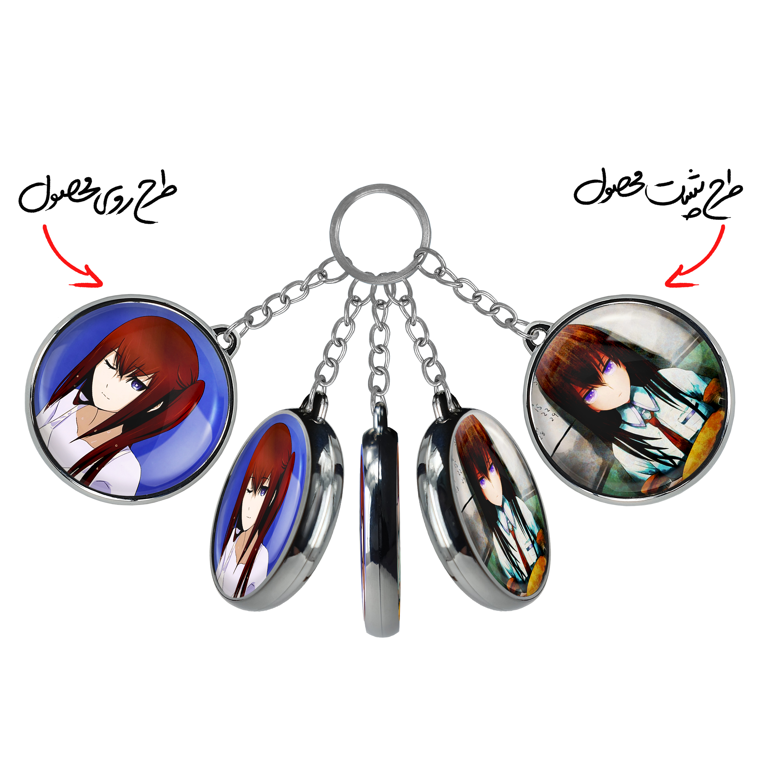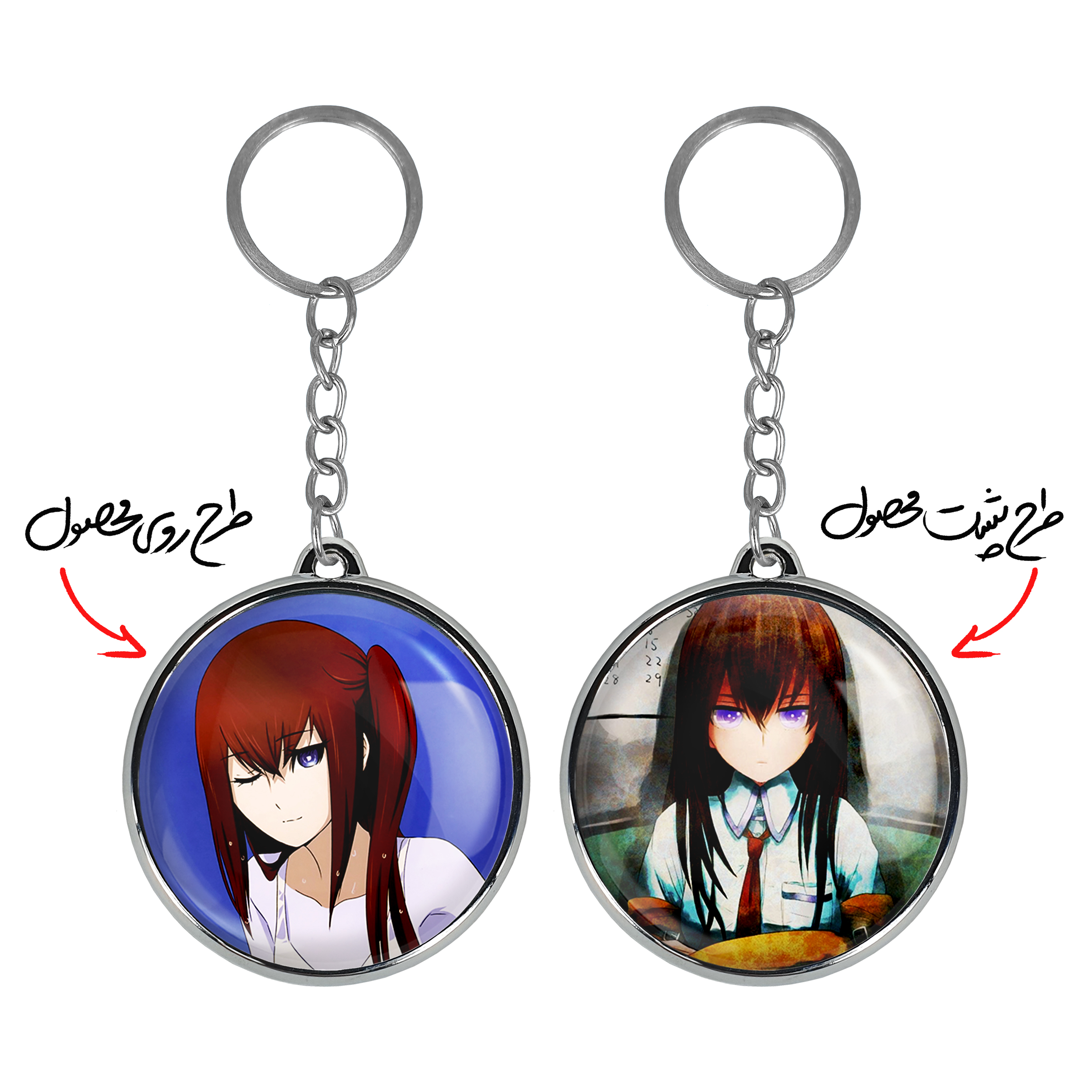 جاکلیدی دوطرفه کوریسو انیمه اشتاینز گیت خندالو محصولی کاربردی و جدید است که در هر دو سمت محصول، تصویری متفاوت اما از یک موضوع چاپ شده و تفاوت اصلی آن با جاکلیدی های یک طرفه در همین است که هر دو سمت پشت و روی جاکلیدی، طرحی دیدنی و جذاب دارد. همچنین رینگ بکار برده شده برای دور طرح ها آبکاری کروم درجه یک و رنگ ثابت است و برخلاف سایر محصولات مشابه، از رنگ های متفرقه و یا سفید استفاده نشده، که این مهم، زیبایی محصول نهایی را چند برابر کرده است. جاکلیدی های دوطرفه کوریسو انیمه اشتاینز گیت با استفاده از روکش سلفون براق ضدخش تولید شده که خاصیت ضدخش بودن آن عمر مفید استفاده از جاکلیدی ها را افزایش میدهد. چاپ جاکلیدی ها با دستگاه های استاندارد و با بهترین سطح کیفیت صورت گرفته و طرح با شفافیتی مثال زدنی و با سلفون چسبی تولید شده است که باعث شده محصول نهایی بدون شکست نور دیده شود. همچنین بسته بندی جذاب و مینیمال جاکلیدی دوطرفه کوریسو انیمه اشتاینز گیت ، آنها را محصولی مناسب هدیه کرده است. زنجیر و حلقه بکار برده شده در جاکلیدی خندالو از نوع حلقه ضخیم و محکم بوده و حین استفاده آسیب نمی بیند.