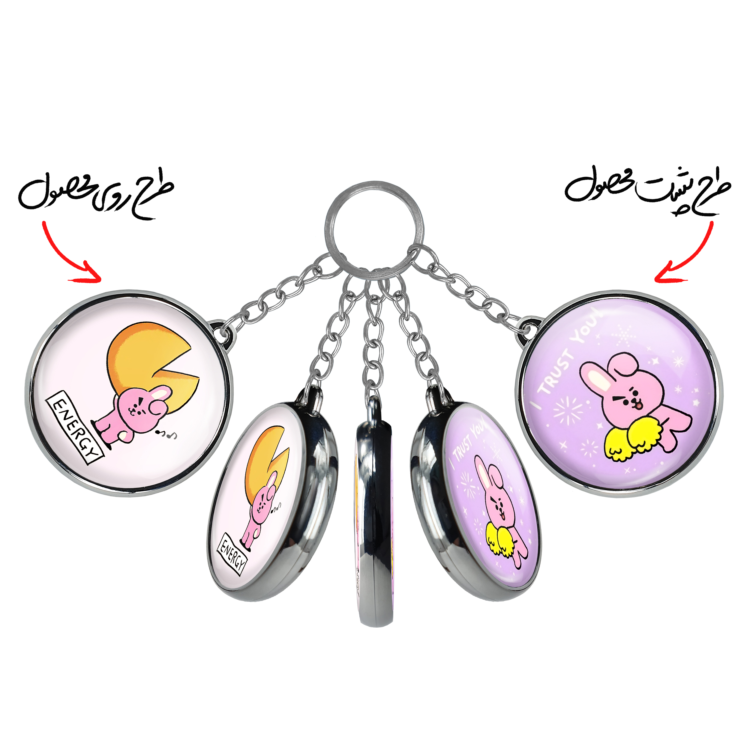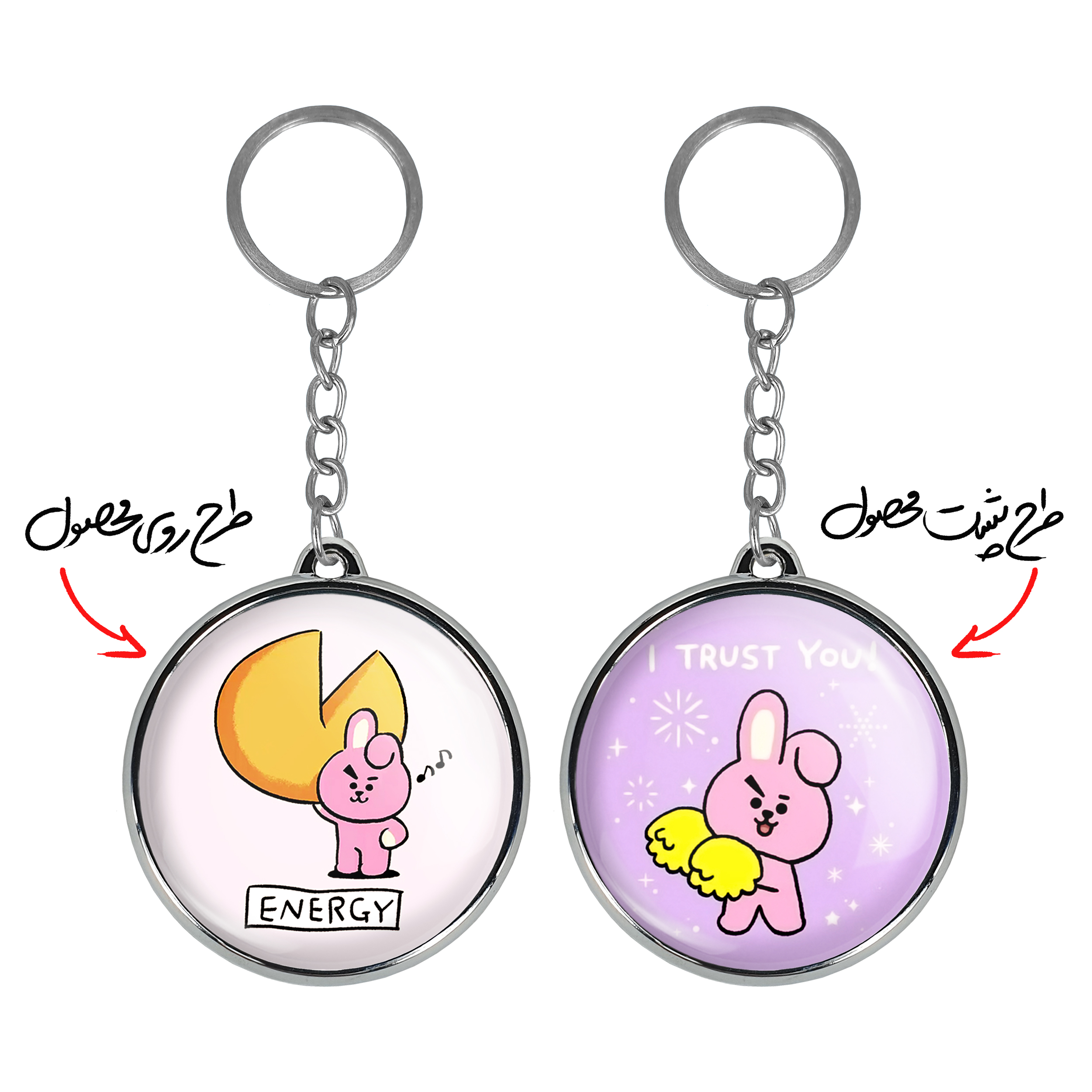 جاکلیدی دوطرفه کوکی BT21 Cookyخندالو محصولی کاربردی و جدید است که در هر دو سمت محصول، تصویری متفاوت اما از یک موضوع چاپ شده و تفاوت اصلی آن با جاکلیدی های یک طرفه در همین است که هر دو سمت پشت و روی جاکلیدی، طرحی دیدنی و جذاب دارد.