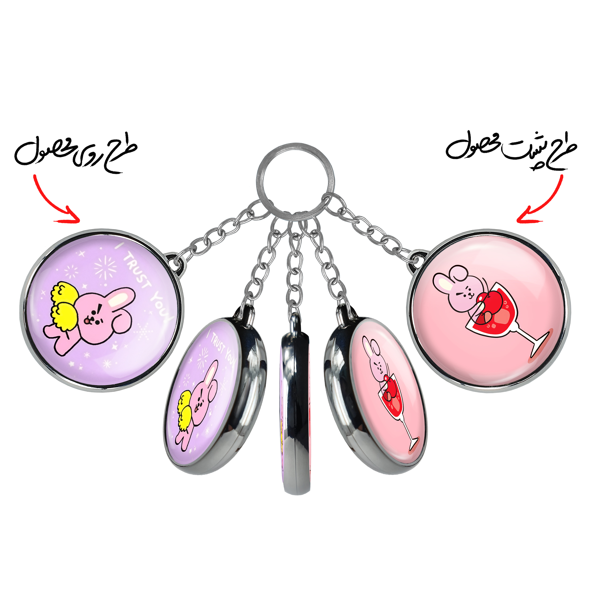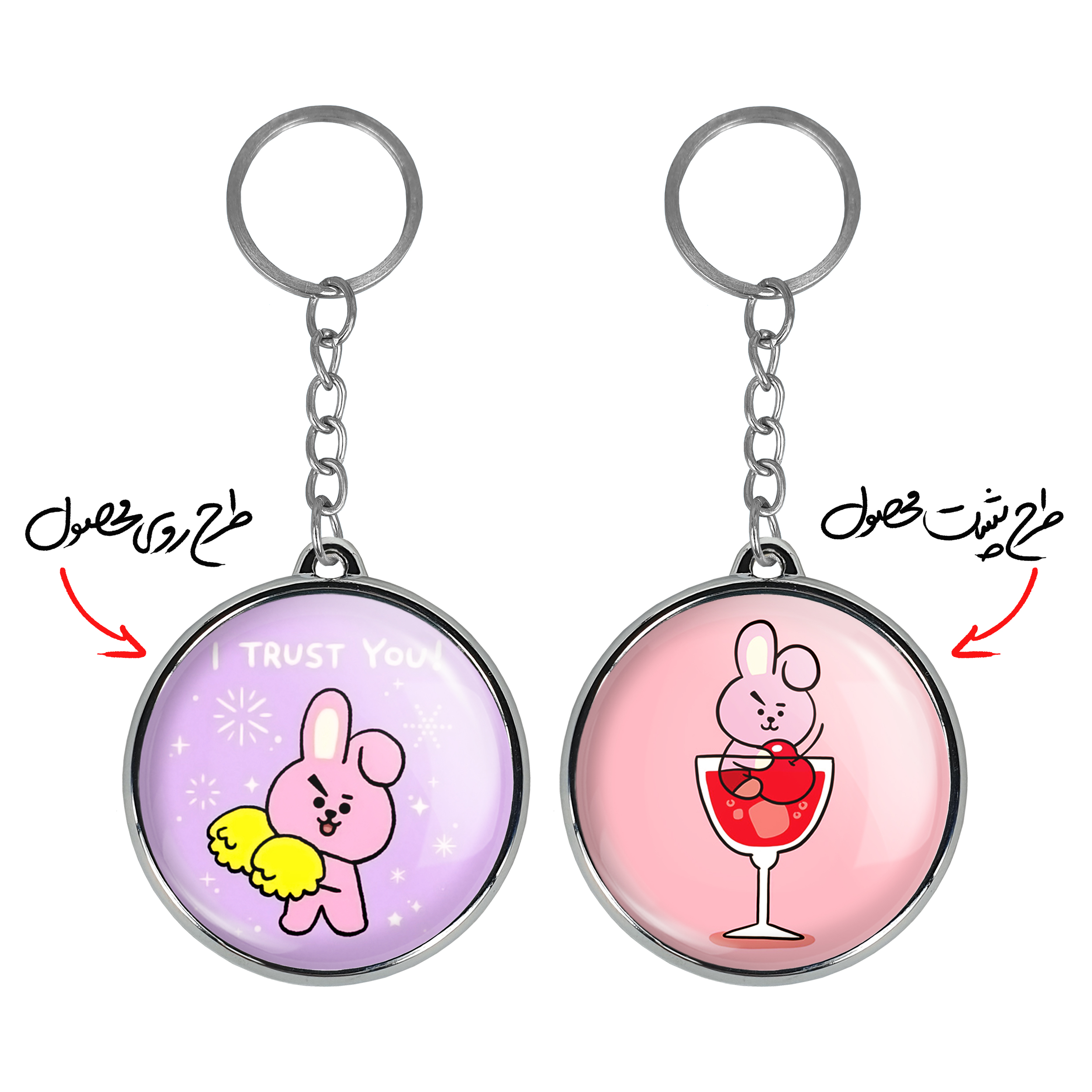 جاکلیدی دوطرفه کوکی BT21 Cookyخندالو محصولی کاربردی و جدید است که در هر دو سمت محصول، تصویری متفاوت اما از یک موضوع چاپ شده و تفاوت اصلی آن با جاکلیدی های یک طرفه در همین است که هر دو سمت پشت و روی جاکلیدی، طرحی دیدنی و جذاب دارد.