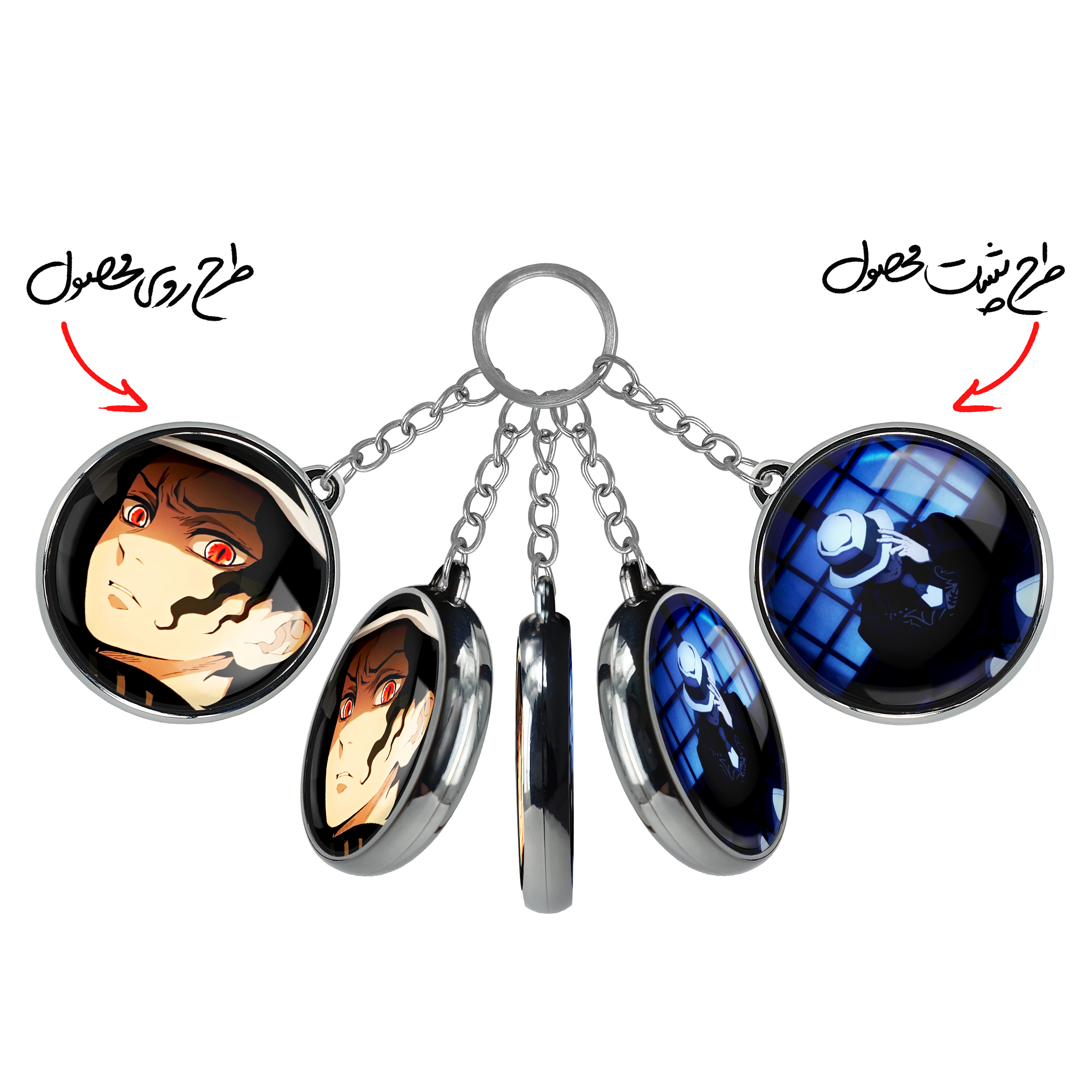 جاکلیدی دوطرفه کیبوتسوجی موزان انیمه شیطان کش خندالو محصولی کاربردی و جدید است که در هر دو سمت محصول، تصویری متفاوت اما از یک موضوع چاپ شده و تفاوت اصلی آن با جاکلیدی های یک طرفه در همین است که هر دو سمت پشت و روی جاکلیدی، طرحی دیدنی و جذاب دارد.