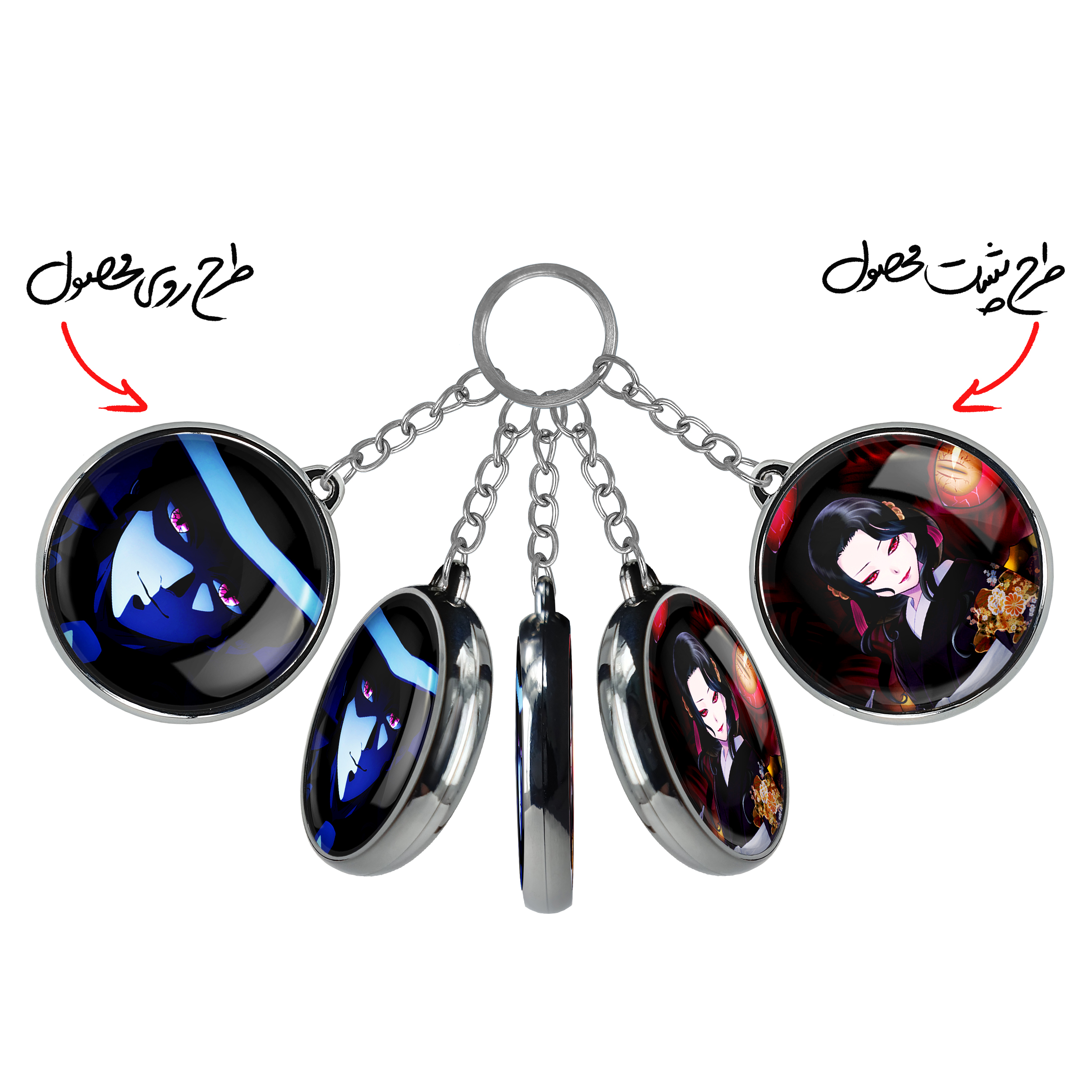 جاکلیدی دوطرفه کیبوتسوجی موزان انیمه شیطان کش خندالو محصولی کاربردی و جدید است که در هر دو سمت محصول، تصویری متفاوت اما از یک موضوع چاپ شده و تفاوت اصلی آن با جاکلیدی های یک طرفه در همین است که هر دو سمت پشت و روی جاکلیدی، طرحی دیدنی و جذاب دارد.