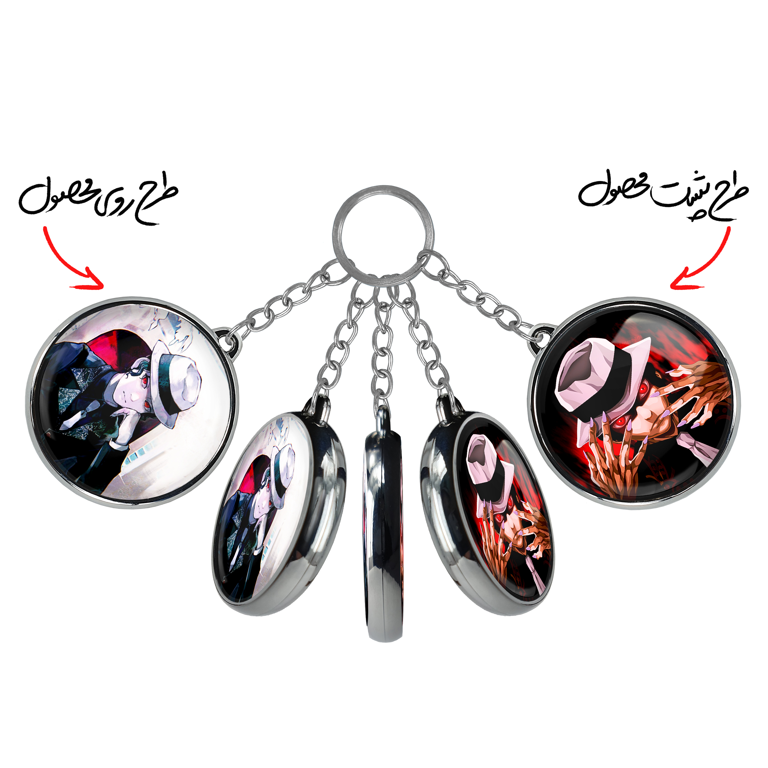 جاکلیدی دوطرفه کیبوتسوجی موزان انیمه شیطان کش خندالو محصولی کاربردی و جدید است که در هر دو سمت محصول، تصویری متفاوت اما از یک موضوع چاپ شده و تفاوت اصلی آن با جاکلیدی های یک طرفه در همین است که هر دو سمت پشت و روی جاکلیدی، طرحی دیدنی و جذاب دارد.