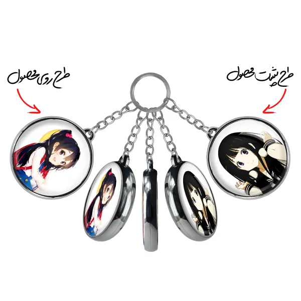 جاکلیدی دوطرفه کیتاشیراکاوا انکو انیمه فروشگاه تاماکو Tamako Market خندالو محصولی کاربردی و جدید است که در هر دو سمت محصول، تصویری متفاوت اما از یک موضوع چاپ شده و تفاوت اصلی آن با جاکلیدی های یک طرفه در همین است که هر دو سمت پشت و روی جاکلیدی، طرحی دیدنی و جذاب دارد. همچنین رینگ بکار برده شده برای دور طرح ها آبکاری کروم درجه یک و رنگ ثابت است و برخلاف سایر محصولات مشابه، از رنگ های متفرقه و یا سفید استفاده نشده، که این مهم، زیبایی محصول نهایی را چند برابر کرده است. جاکلیدی های دوطرفه کیتاشیراکاوا انکو انیمه فروشگاه تاماکو Tamako Market با استفاده از روکش سلفون براق ضدخش تولید شده که خاصیت ضدخش بودن آن عمر مفید استفاده از جاکلیدی ها را افزایش میدهد. چاپ جاکلیدی ها با دستگاه های استاندارد و با بهترین سطح کیفیت صورت گرفته و طرح با شفافیتی مثال زدنی و با سلفون چسبی تولید شده است که باعث شده محصول نهایی بدون شکست نور دیده شود. همچنین بسته بندی جذاب و مینیمال جاکلیدی دوطرفه کیتاشیراکاوا انکو انیمه فروشگاه تاماکو Tamako Market ، آنها را محصولی مناسب هدیه کرده است. زنجیر و حلقه بکار برده شده در جاکلیدی خندالو از نوع حلقه ضخیم و محکم بوده و حین استفاده آسیب نمی بیند.