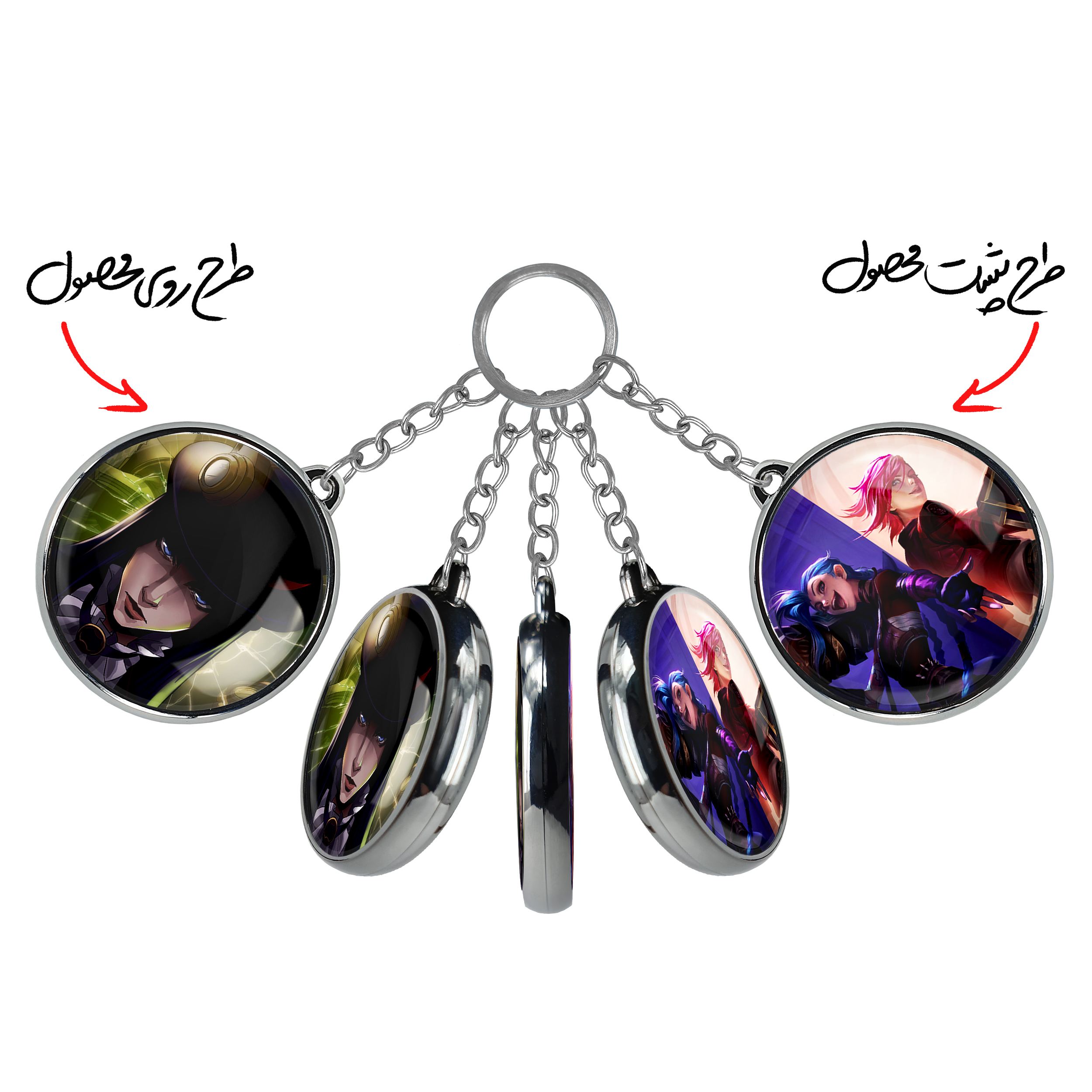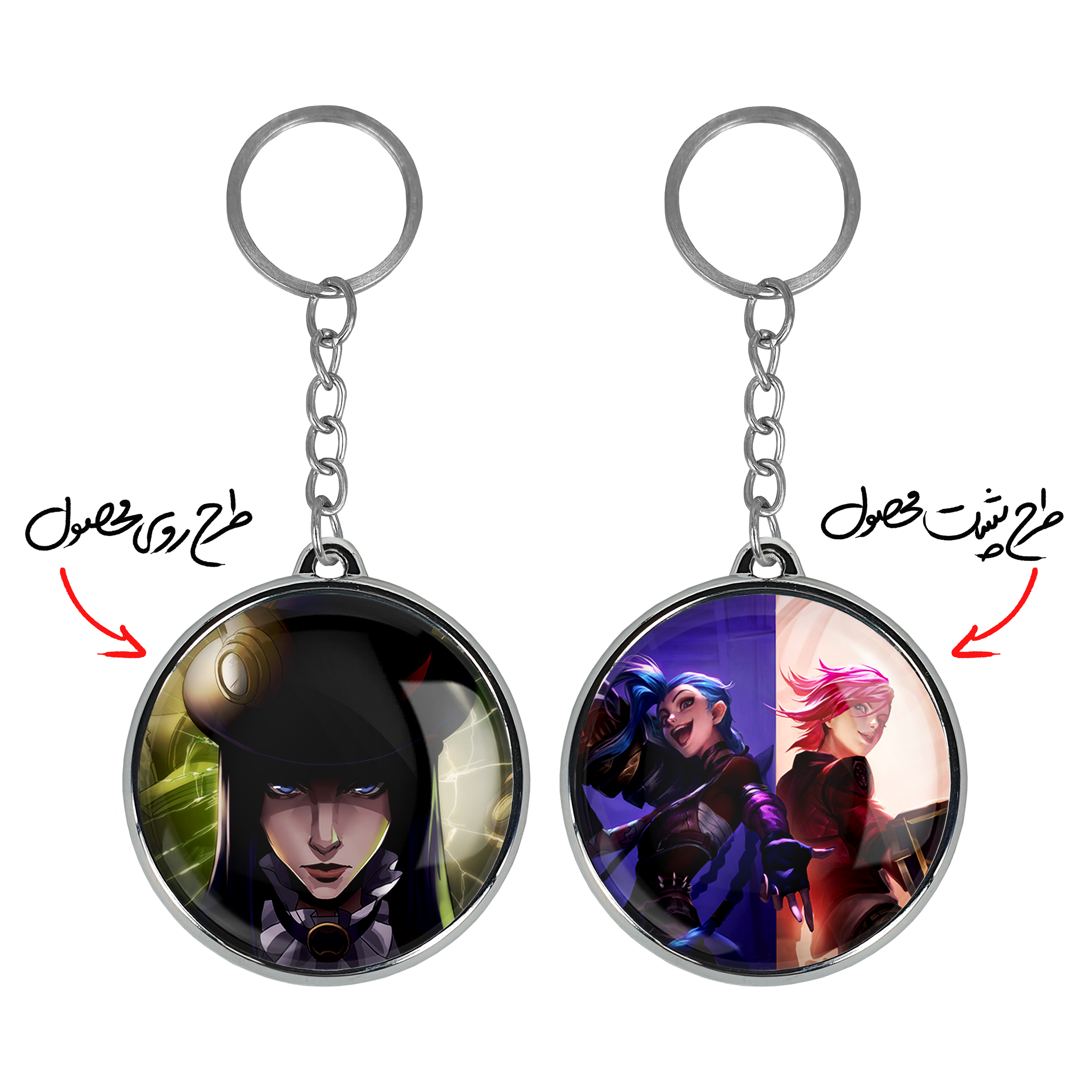 جاکلیدی دوطرفه کیتلین وای جیس آرکینخندالو محصولی کاربردی و جدید است که در هر دو سمت محصول، تصویری متفاوت اما از یک موضوع چاپ شده و تفاوت اصلی آن با جاکلیدی های یک طرفه در همین است که هر دو سمت پشت و روی جاکلیدی، طرحی دیدنی و جذاب دارد. همچنین رینگ بکار برده شده برای دور طرح ها آبکاری کروم درجه یک و رنگ ثابت است و برخلاف سایر محصولات مشابه، از رنگ های متفرقه و یا سفید استفاده نشده، که این مهم، زیبایی محصول نهایی را چند برابر کرده است. جاکلیدی های دوطرفه کیتلین وای جیس آرکینبا استفاده از روکش سلفون براق ضدخش تولید شده که خاصیت ضدخش بودن آن عمر مفید استفاده از جاکلیدی ها را افزایش میدهد. چاپ جاکلیدی ها با دستگاه های استاندارد و با بهترین سطح کیفیت صورت گرفته و طرح با شفافیتی مثال زدنی و با سلفون چسبی تولید شده است که باعث شده محصول نهایی بدون شکست نور دیده شود. همچنین بسته بندی جذاب و مینیمال جاکلیدی دوطرفه کیتلین وای جیس آرکین، آنها را محصولی مناسب هدیه کرده است. زنجیر و حلقه بکار برده شده در جاکلیدی خندالو از نوع حلقه ضخیم و محکم بوده و حین استفاده آسیب نمی بیند.