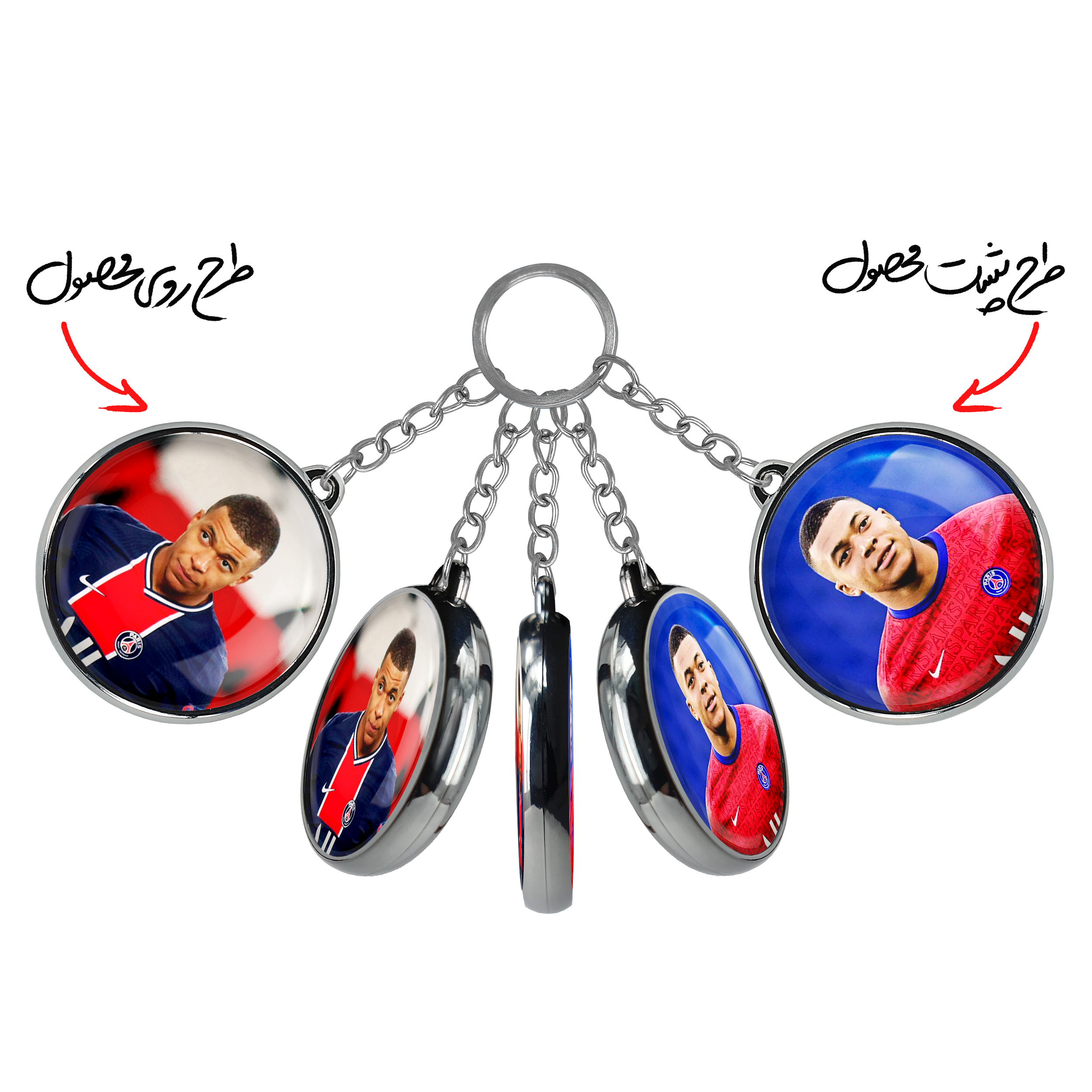 جاکلیدی دوطرفه کیلیان امباپه خندالو محصولی کاربردی و جدید است که در هر دو سمت محصول، تصویری متفاوت اما از یک موضوع چاپ شده و تفاوت اصلی آن با جاکلیدی های یک طرفه در همین است که هر دو سمت پشت و روی جاکلیدی، طرحی دیدنی و جذاب دارد.