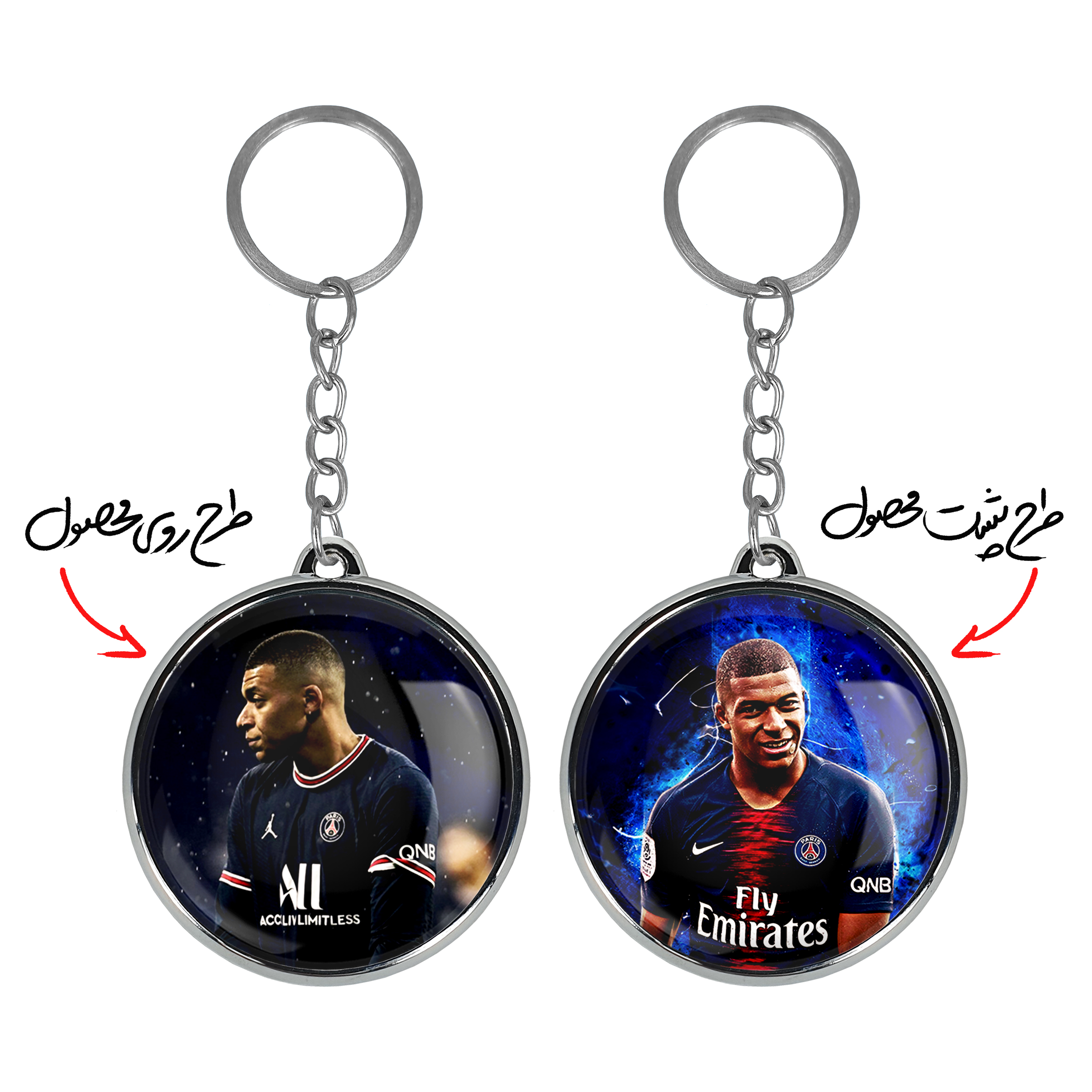 جاکلیدی دوطرفه کیلیان امباپه خندالو محصولی کاربردی و جدید است که در هر دو سمت محصول، تصویری متفاوت اما از یک موضوع چاپ شده و تفاوت اصلی آن با جاکلیدی های یک طرفه در همین است که هر دو سمت پشت و روی جاکلیدی، طرحی دیدنی و جذاب دارد.