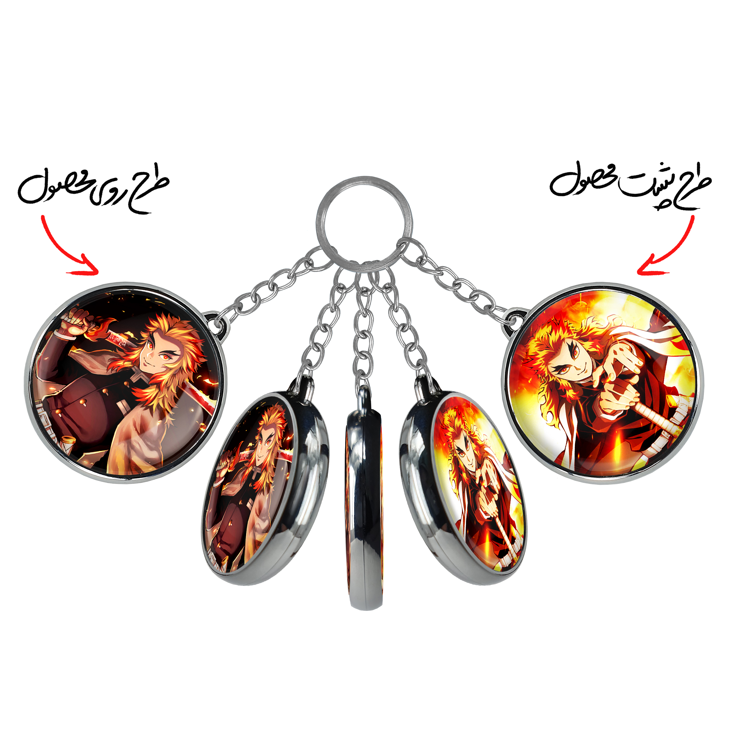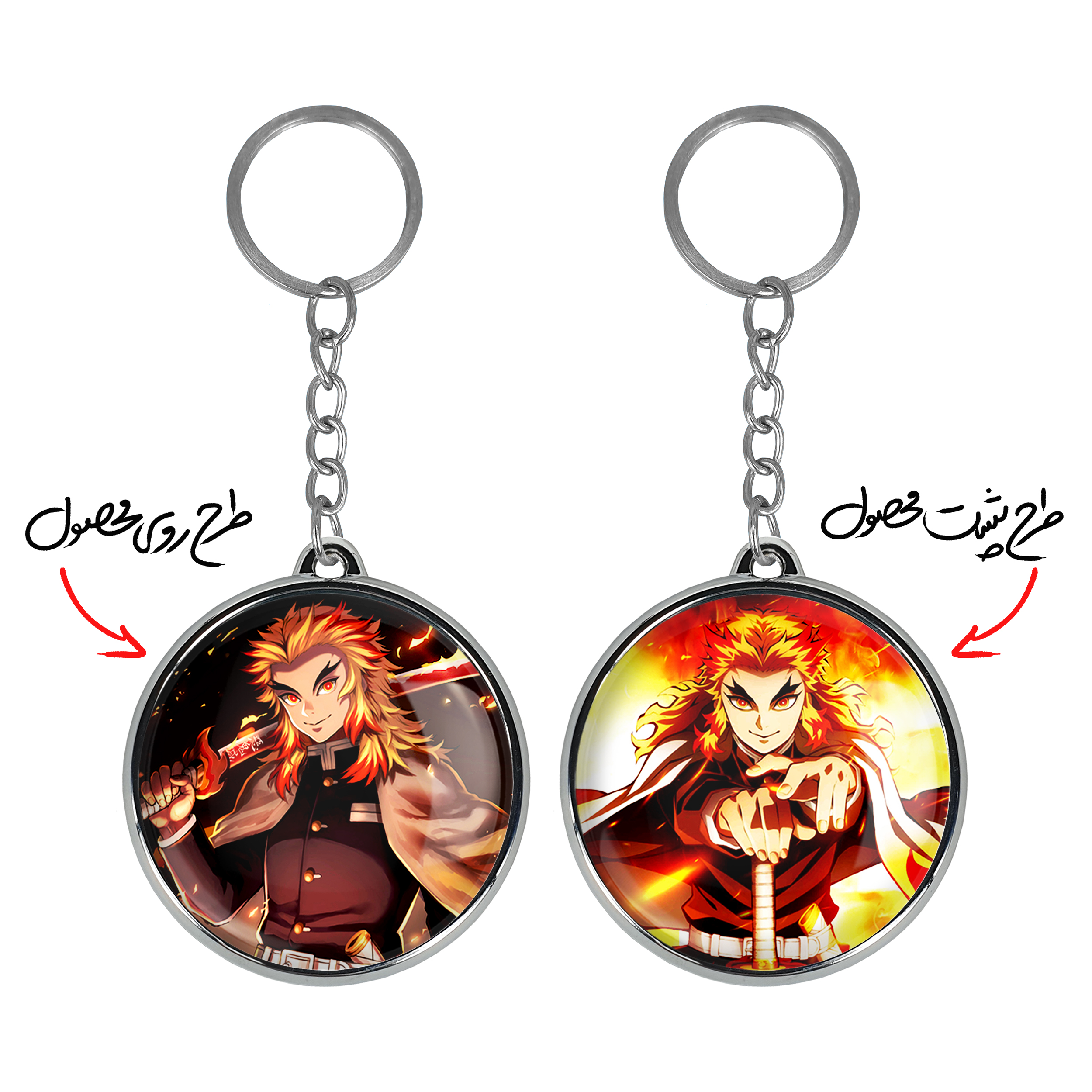 جاکلیدی دوطرفه کیوجورو رنگوکو انیمه شیطان کش خندالو محصولی کاربردی و جدید است که در هر دو سمت محصول، تصویری متفاوت اما از یک موضوع چاپ شده و تفاوت اصلی آن با جاکلیدی های یک طرفه در همین است که هر دو سمت پشت و روی جاکلیدی، طرحی دیدنی و جذاب دارد.