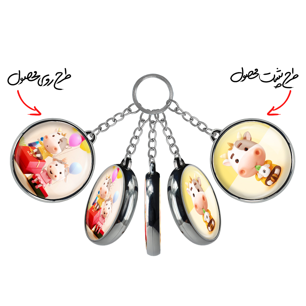 جاکلیدی دوطرفه گاو خندالو محصولی کاربردی و جدید است که در هر دو سمت محصول، تصویری متفاوت اما از یک موضوع چاپ شده و تفاوت اصلی آن با جاکلیدی های یک طرفه در همین است که هر دو سمت پشت و روی جاکلیدی، طرحی دیدنی و جذاب دارد.