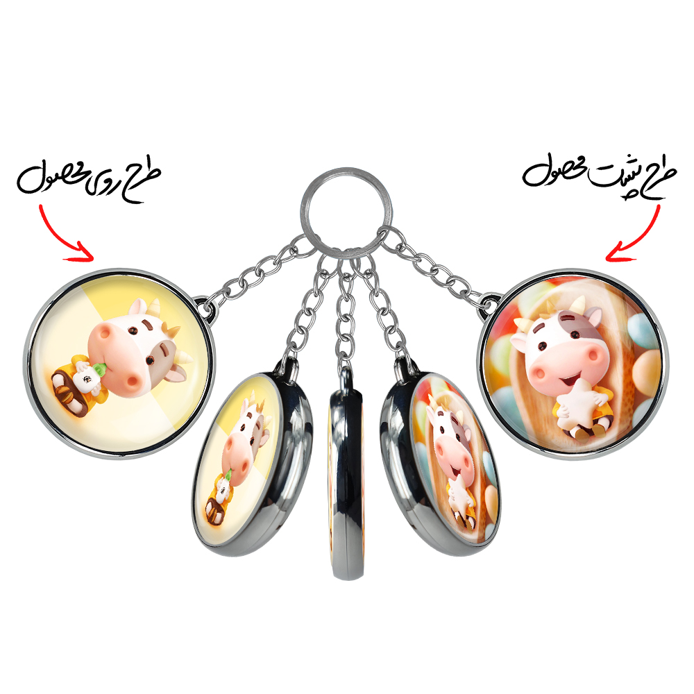 جاکلیدی دوطرفه گاو خندالو محصولی کاربردی و جدید است که در هر دو سمت محصول، تصویری متفاوت اما از یک موضوع چاپ شده و تفاوت اصلی آن با جاکلیدی های یک طرفه در همین است که هر دو سمت پشت و روی جاکلیدی، طرحی دیدنی و جذاب دارد. همچنین رینگ بکار برده شده برای دور طرح ها آبکاری کروم درجه یک و رنگ ثابت است و برخلاف سایر محصولات مشابه، از رنگ های متفرقه و یا سفید استفاده نشده، که این مهم، زیبایی محصول نهایی را چند برابر کرده است. جاکلیدی های دوطرفه گاو با استفاده از روکش سلفون براق ضدخش تولید شده که خاصیت ضدخش بودن آن عمر مفید استفاده از جاکلیدی ها را افزایش میدهد. چاپ جاکلیدی ها با دستگاه های استاندارد و با بهترین سطح کیفیت صورت گرفته و طرح با شفافیتی مثال زدنی و با سلفون چسبی تولید شده است که باعث شده محصول نهایی بدون شکست نور دیده شود. همچنین بسته بندی جذاب و مینیمال جاکلیدی دوطرفه گاو ، آنها را محصولی مناسب هدیه کرده است. زنجیر و حلقه بکار برده شده در جاکلیدی خندالو از نوع حلقه ضخیم و محکم بوده و حین استفاده آسیب نمی بیند.