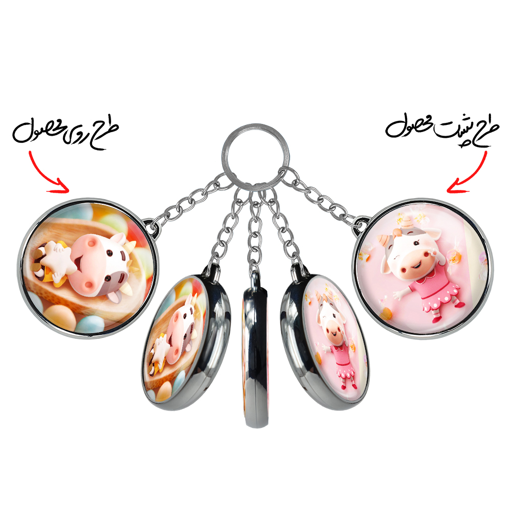 جاکلیدی دوطرفه گاو خندالو محصولی کاربردی و جدید است که در هر دو سمت محصول، تصویری متفاوت اما از یک موضوع چاپ شده و تفاوت اصلی آن با جاکلیدی های یک طرفه در همین است که هر دو سمت پشت و روی جاکلیدی، طرحی دیدنی و جذاب دارد. همچنین رینگ بکار برده شده برای دور طرح ها آبکاری کروم درجه یک و رنگ ثابت است و برخلاف سایر محصولات مشابه، از رنگ های متفرقه و یا سفید استفاده نشده، که این مهم، زیبایی محصول نهایی را چند برابر کرده است. جاکلیدی های دوطرفه گاو با استفاده از روکش سلفون براق ضدخش تولید شده که خاصیت ضدخش بودن آن عمر مفید استفاده از جاکلیدی ها را افزایش میدهد. چاپ جاکلیدی ها با دستگاه های استاندارد و با بهترین سطح کیفیت صورت گرفته و طرح با شفافیتی مثال زدنی و با سلفون چسبی تولید شده است که باعث شده محصول نهایی بدون شکست نور دیده شود. همچنین بسته بندی جذاب و مینیمال جاکلیدی دوطرفه گاو ، آنها را محصولی مناسب هدیه کرده است. زنجیر و حلقه بکار برده شده در جاکلیدی خندالو از نوع حلقه ضخیم و محکم بوده و حین استفاده آسیب نمی بیند.