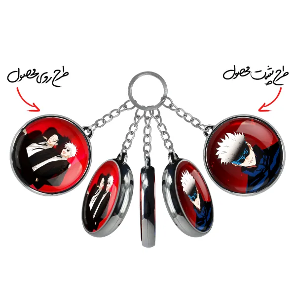 جاکلیدی دوطرفه گتو و گوجو انیمه جوجوتسو کایزن خندالو محصولی کاربردی و جدید است که در هر دو سمت محصول، تصویری متفاوت اما از یک موضوع چاپ شده و تفاوت اصلی آن با جاکلیدی های یک طرفه در همین است که هر دو سمت پشت و روی جاکلیدی، طرحی دیدنی و جذاب دارد. همچنین رینگ بکار برده شده برای دور طرح ها آبکاری کروم درجه یک و رنگ ثابت است و برخلاف سایر محصولات مشابه، از رنگ های متفرقه و یا سفید استفاده نشده، که این مهم، زیبایی محصول نهایی را چند برابر کرده است. جاکلیدی های دوطرفه گتو و گوجو انیمه جوجوتسو کایزن با استفاده از روکش سلفون براق ضدخش تولید شده که خاصیت ضدخش بودن آن عمر مفید استفاده از جاکلیدی ها را افزایش میدهد. چاپ جاکلیدی ها با دستگاه های استاندارد و با بهترین سطح کیفیت صورت گرفته و طرح با شفافیتی مثال زدنی و با سلفون چسبی تولید شده است که باعث شده محصول نهایی بدون شکست نور دیده شود. همچنین بسته بندی جذاب و مینیمال جاکلیدی دوطرفه گتو و گوجو انیمه جوجوتسو کایزن ، آنها را محصولی مناسب هدیه کرده است. زنجیر و حلقه بکار برده شده در جاکلیدی خندالو از نوع حلقه ضخیم و محکم بوده و حین استفاده آسیب نمی بیند.