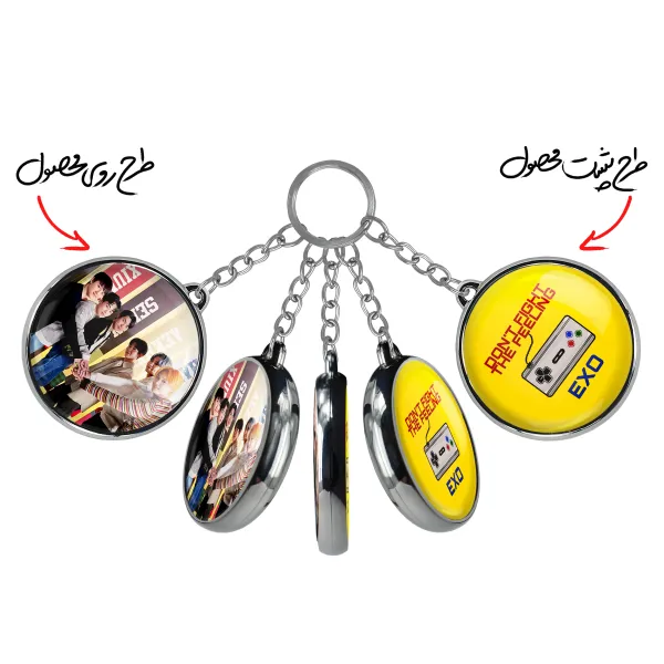 جاکلیدی دوطرفه گروه اکسو EXO خندالو محصولی کاربردی و جدید است که در هر دو سمت محصول، تصویری متفاوت اما از یک موضوع چاپ شده و تفاوت اصلی آن با جاکلیدی های یک طرفه در همین است که هر دو سمت پشت و روی جاکلیدی، طرحی دیدنی و جذاب دارد.
